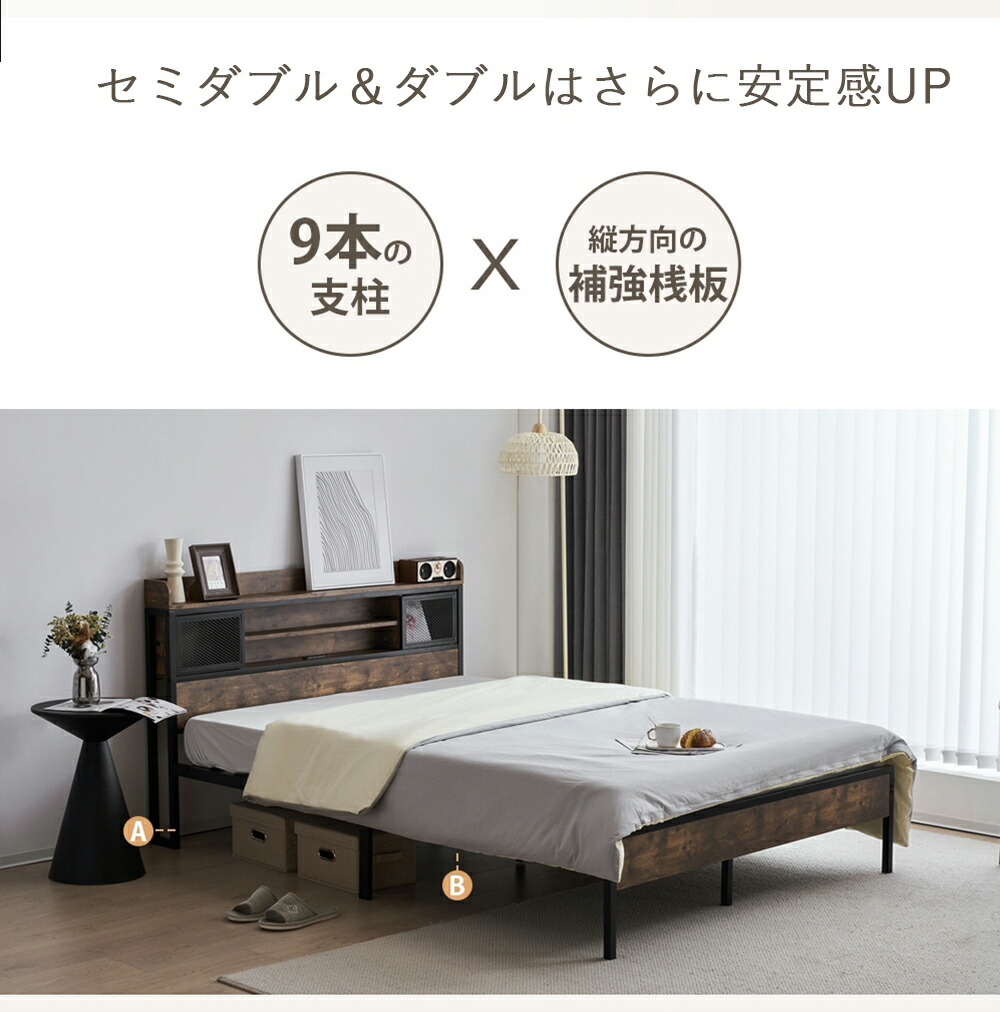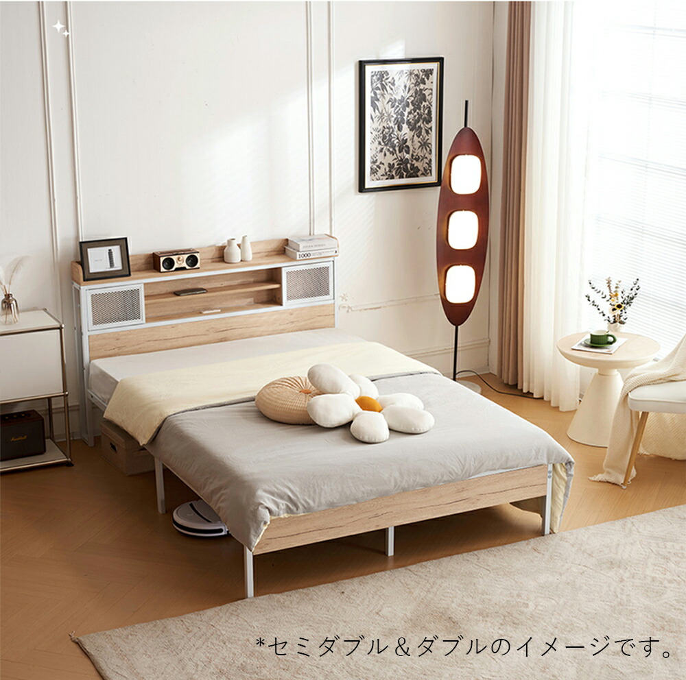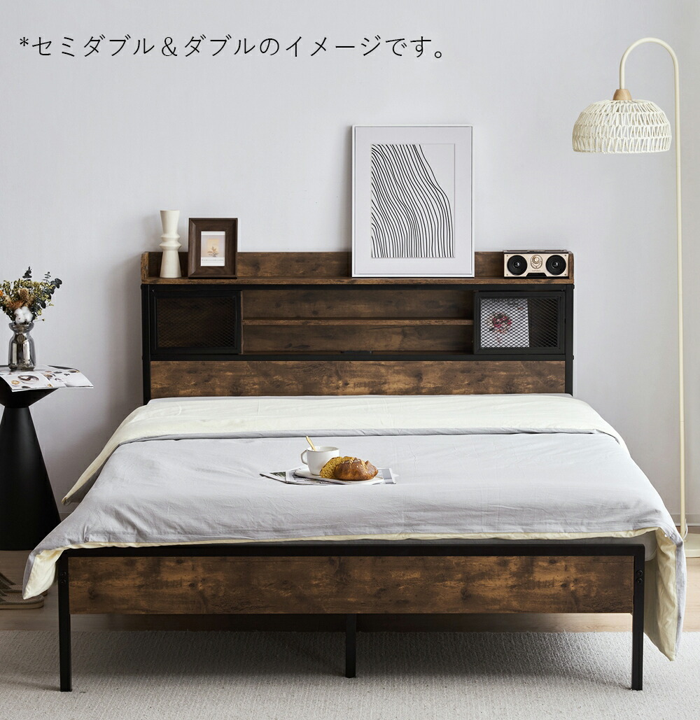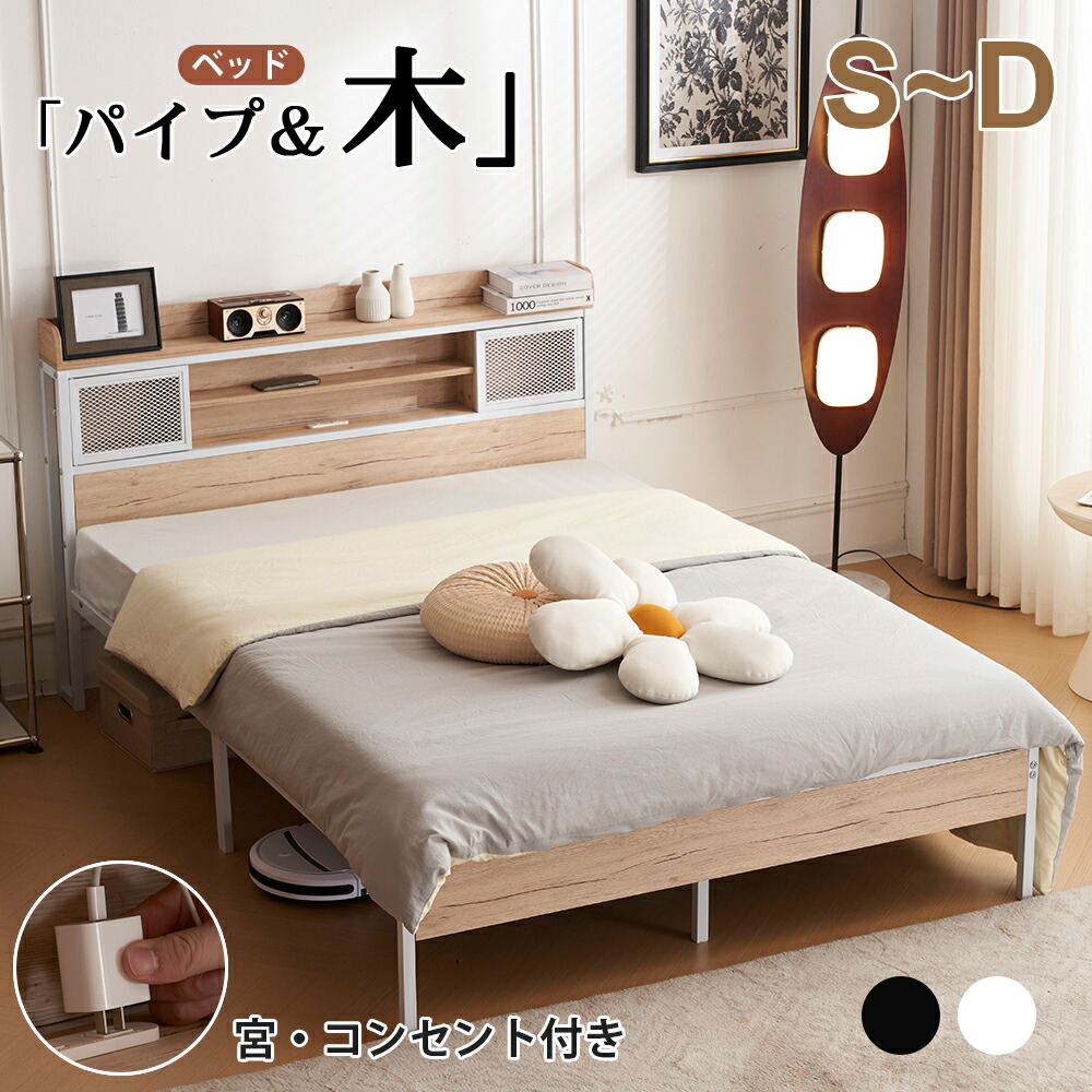 パイプベッド ベッドフレーム 宮付き シングル セミダブル ダブル