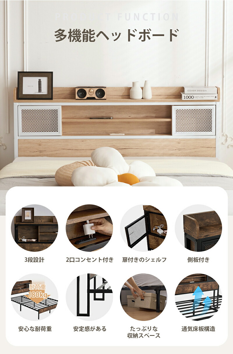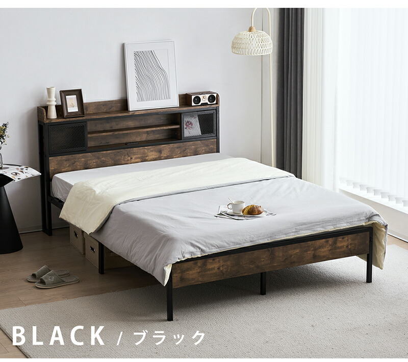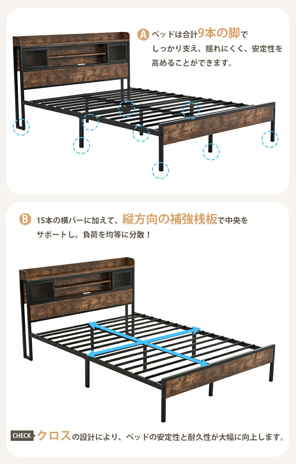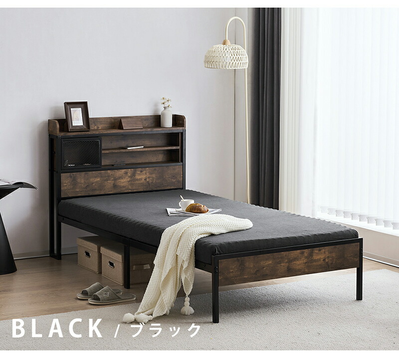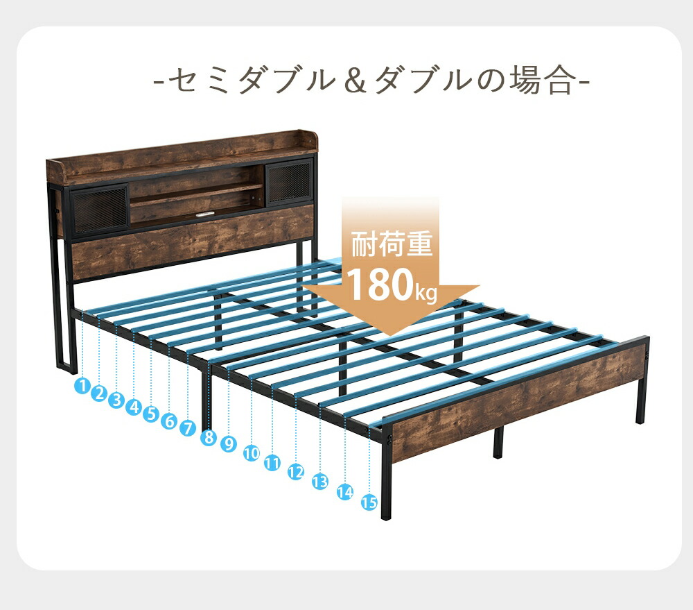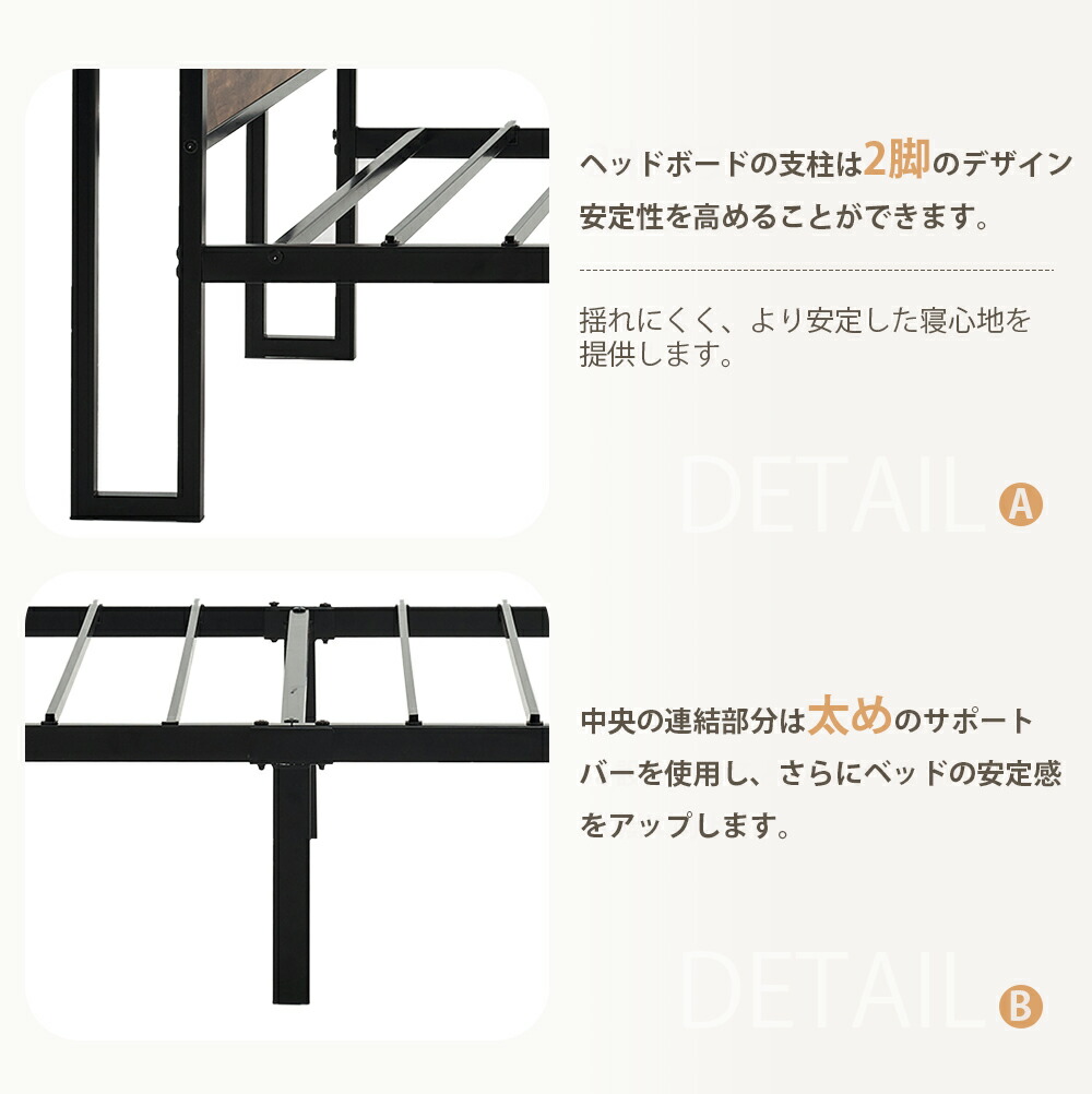 パイプベッド ベッドフレーム 宮付き シングル セミダブル ダブル