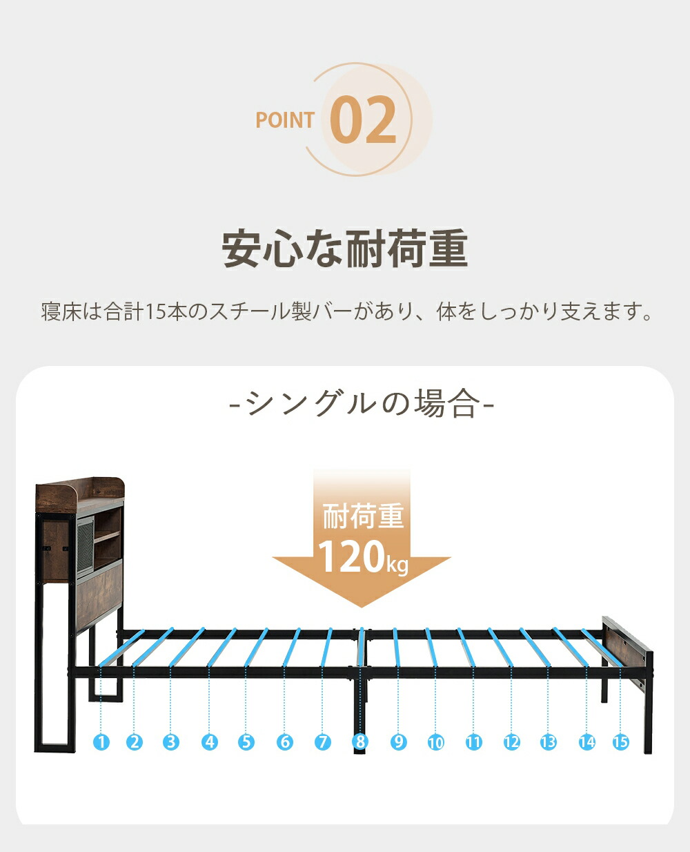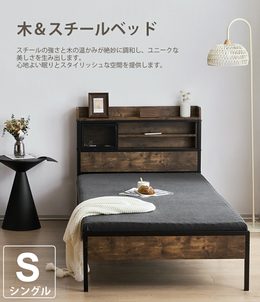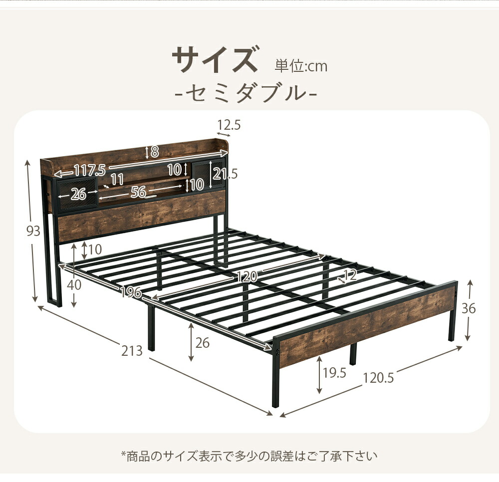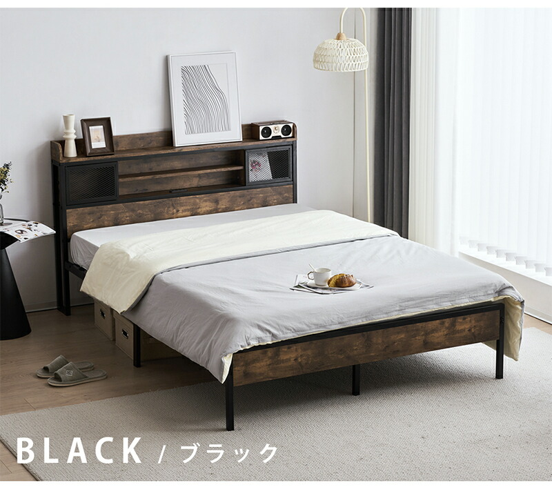 パイプベッド ベッドフレーム 宮付き シングル セミダブル ダブル