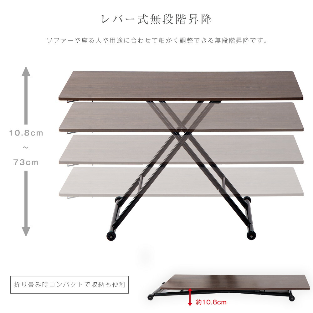 テーブル ガス圧昇降式テーブル 無段階 クルミ ナチュラル