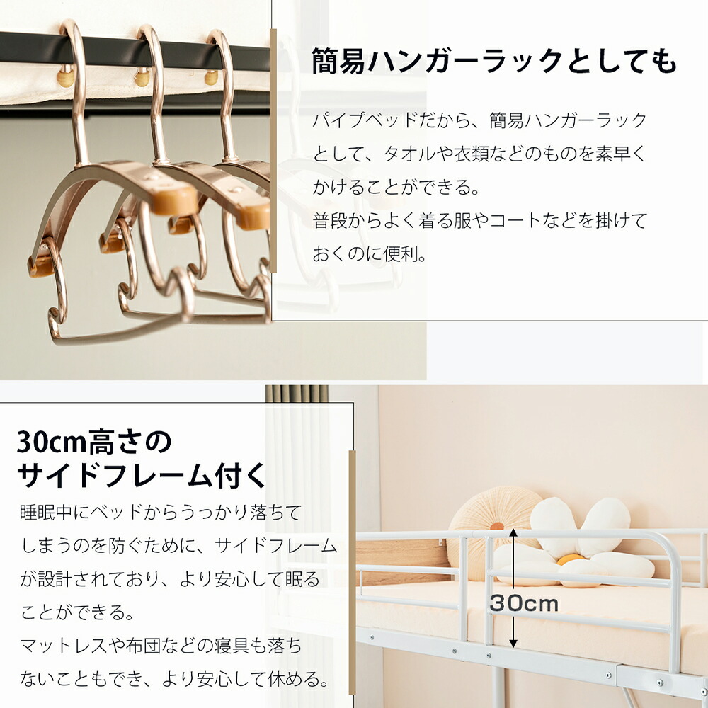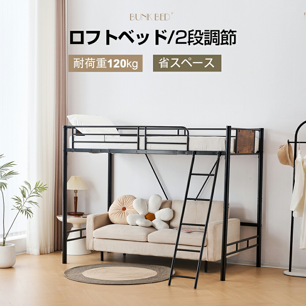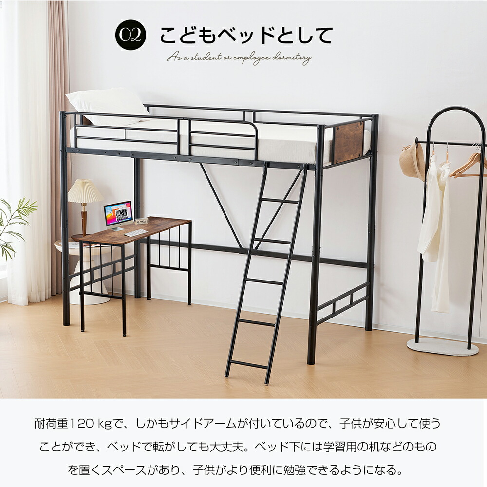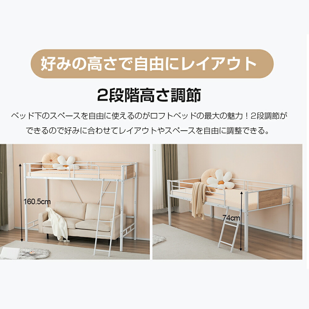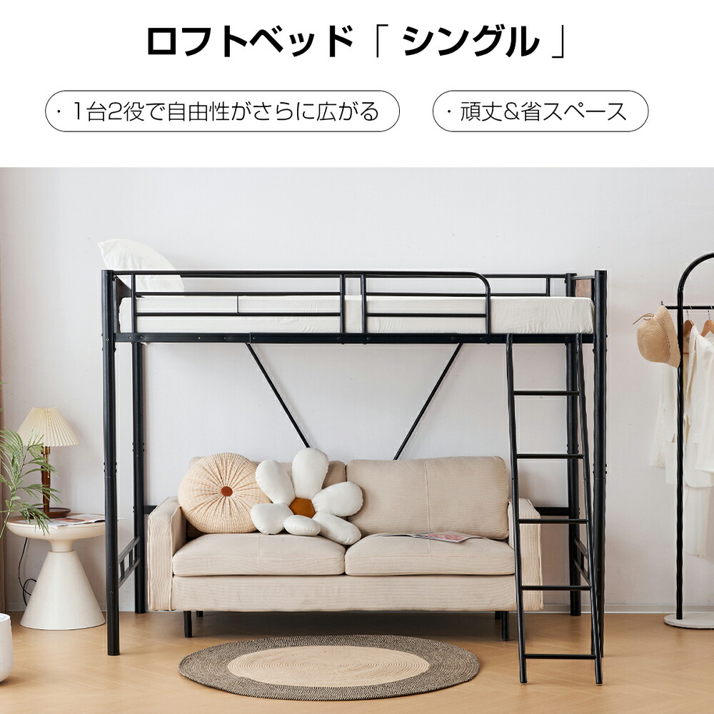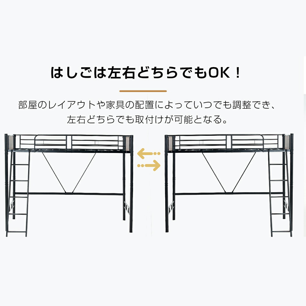 ロフトベッド パイプベッド シングル ホワイト ブラック