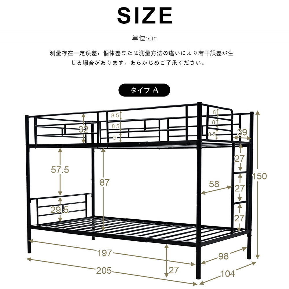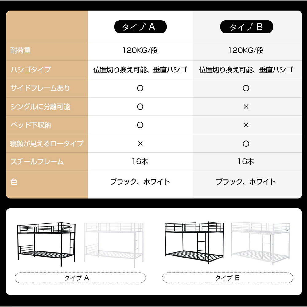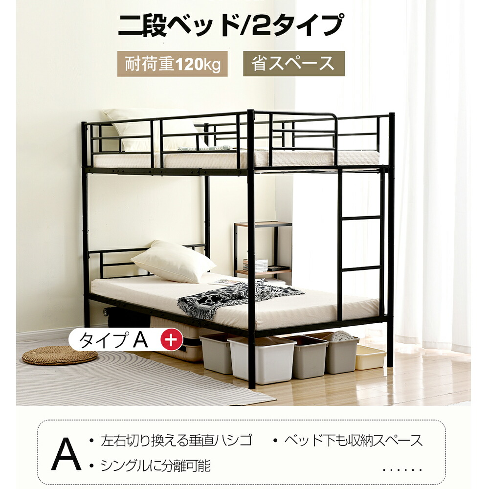 二段ベッド 2段ベッド 1年保証 分離 タイプA タイプB ブラック ホワイト