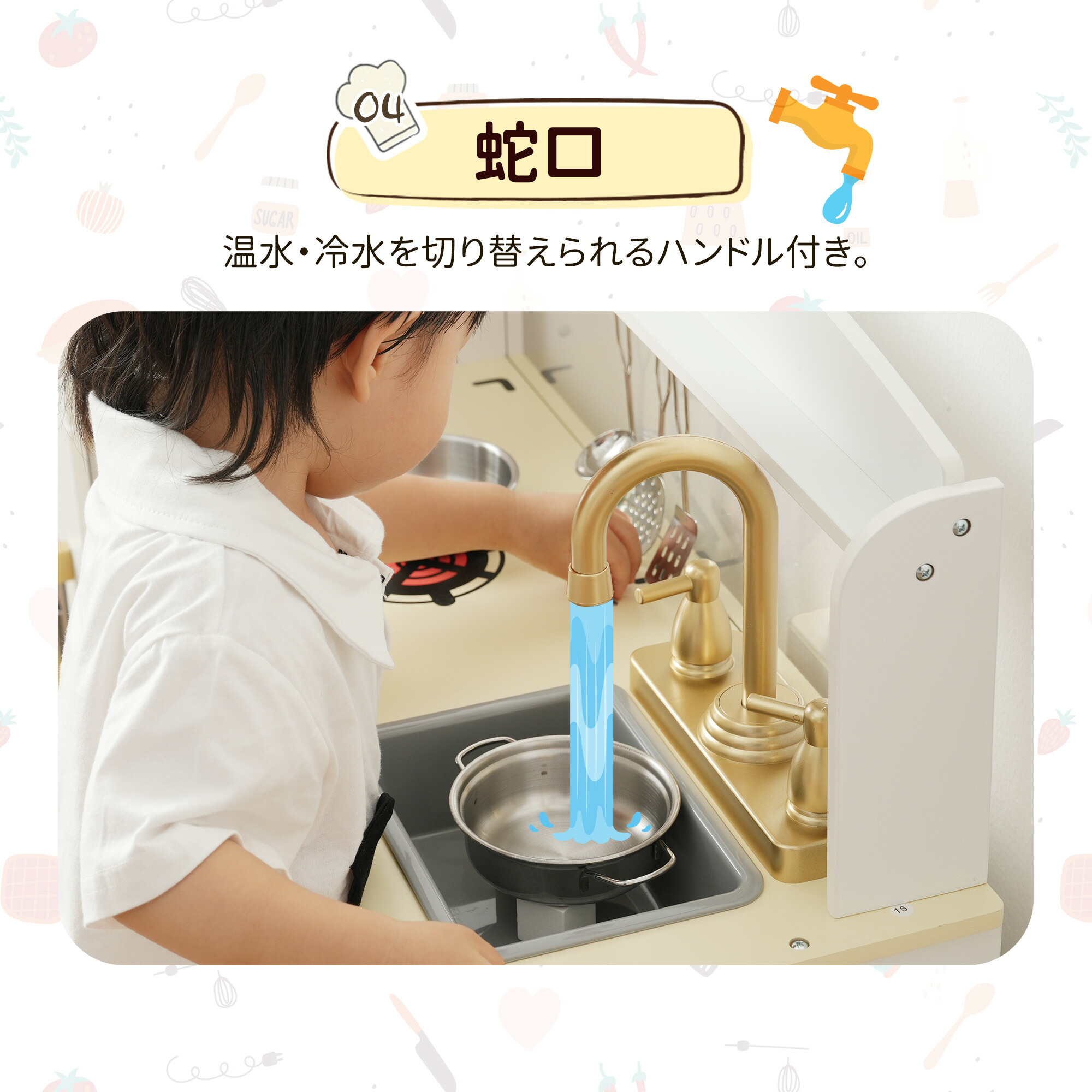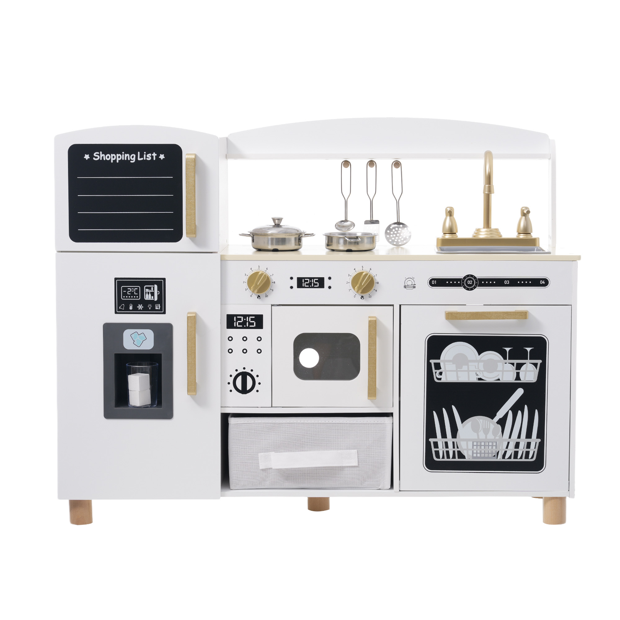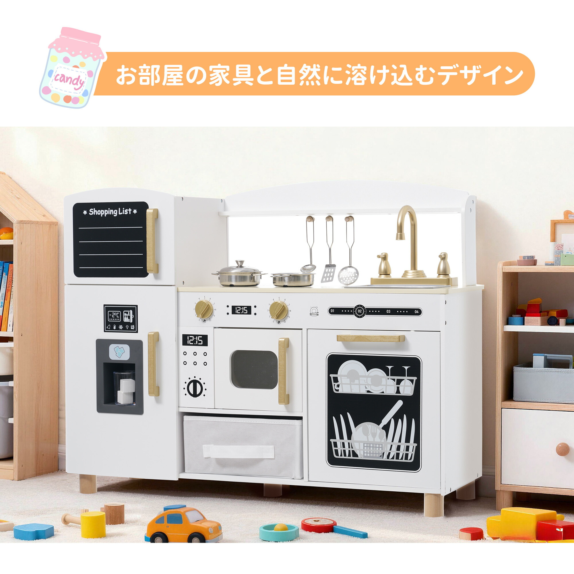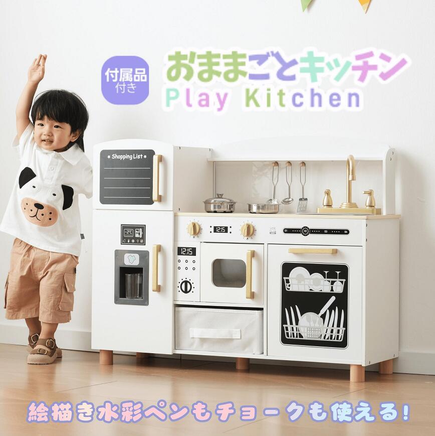 おままごとキッチン 絵描き 冷蔵庫 製氷機 黒板 木製 蛇口 シンク 食洗機 台所 声を出せる 調理器具付き 調味料 ごっこ遊び 料理 家事 おもちゃ 贈り物 男の子 お店屋さんごっこ 誕生日 女の子