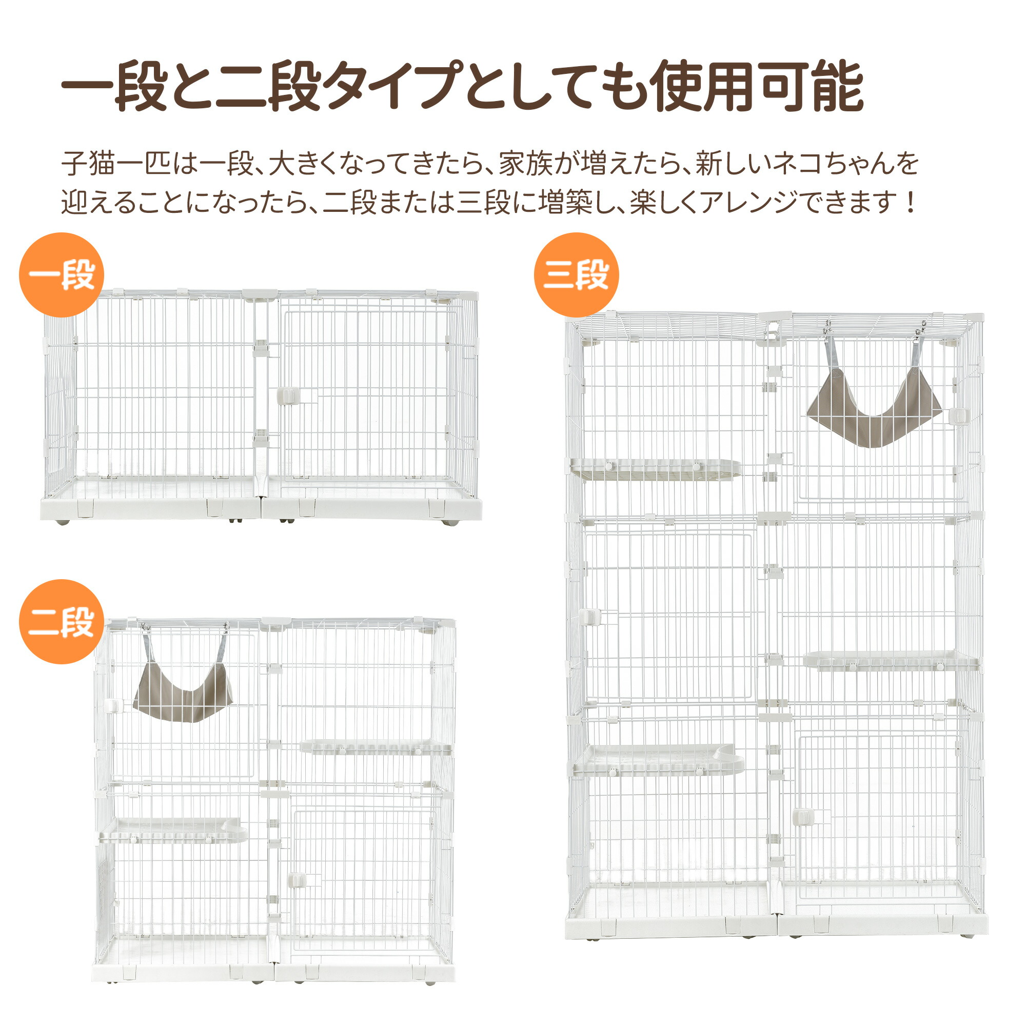 猫 ケージ キャットケージ 3段 幅広 ペット ペットグッズ 特集 グレー ホワイト