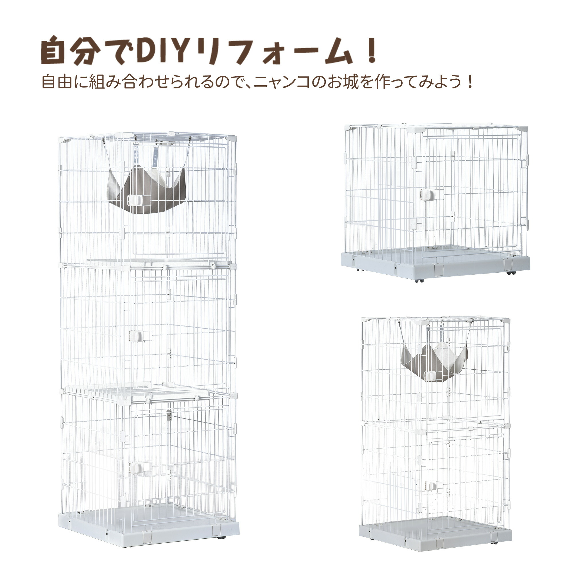 猫 ケージ キャットケージ 3段 幅広設計 自由組み合わせ 猫ドア付き ハンモック付き 大型 猫ゲージ 高級感 おしゃれ キャットハウス ネコ ハウス 多段 留守番 保護 多頭飼い 多頭 ス 脱走防止