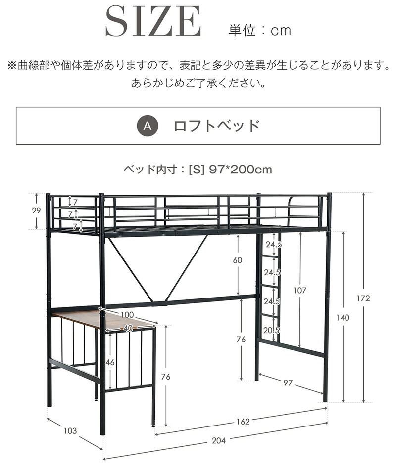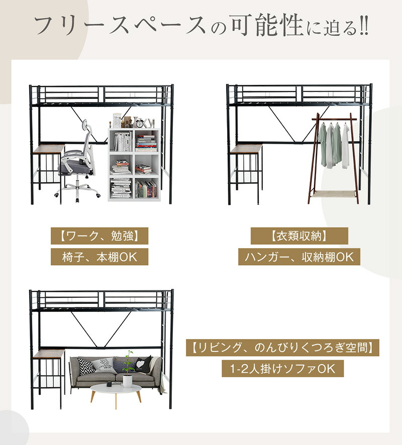 ロフトベッド パイプベッド シングル ホワイト ブラック