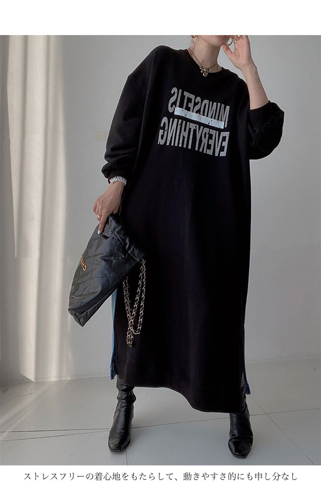 スウェットワンピース 長袖 マキシ丈 レディースファッション 超目玉商品 ブラック グレー ベージュ