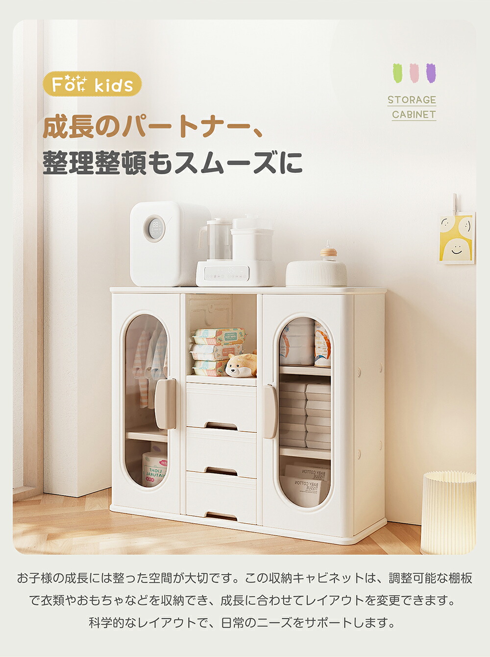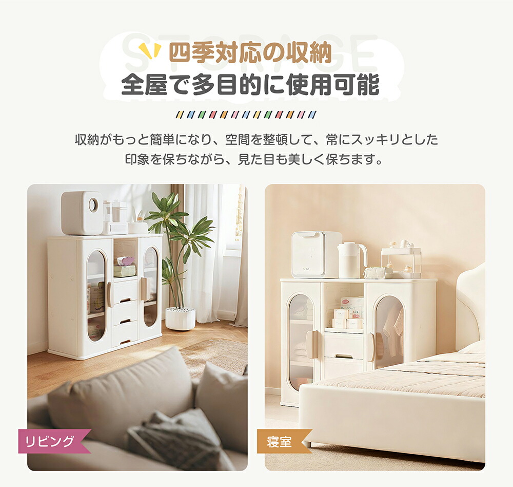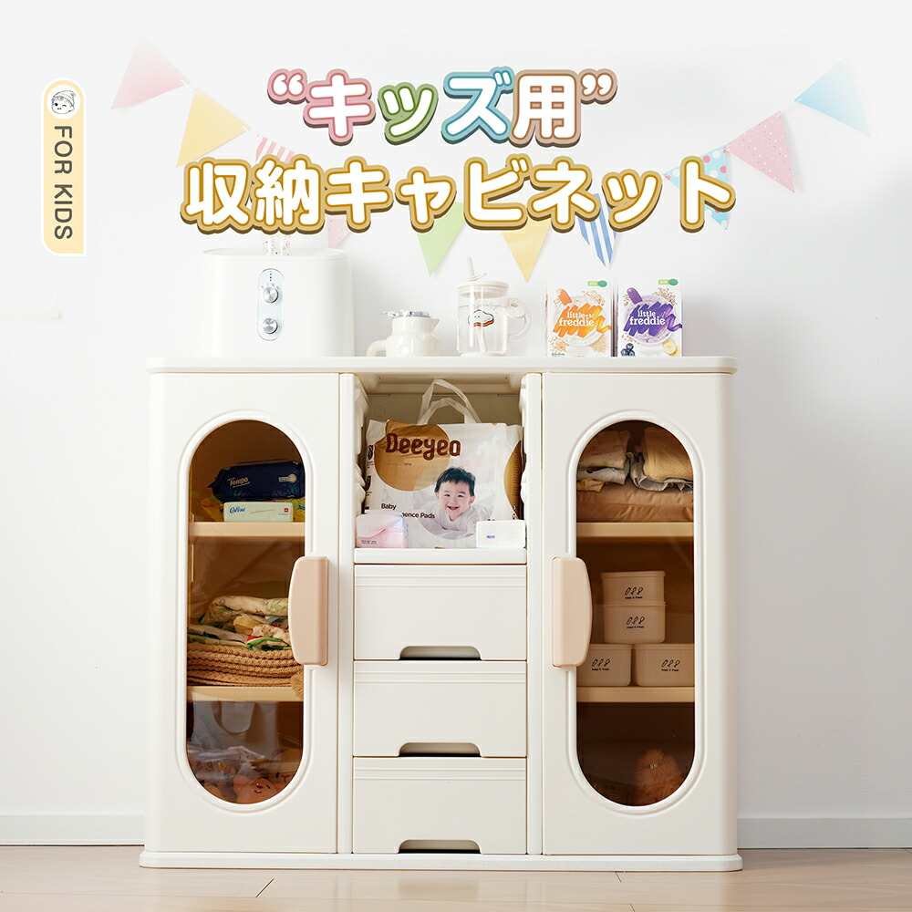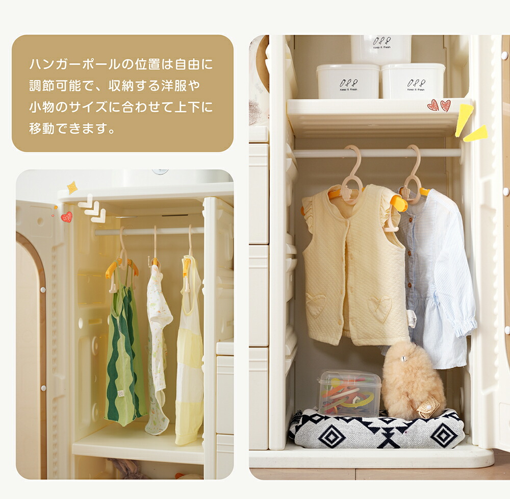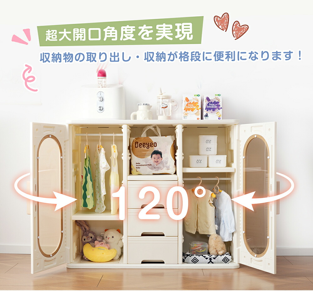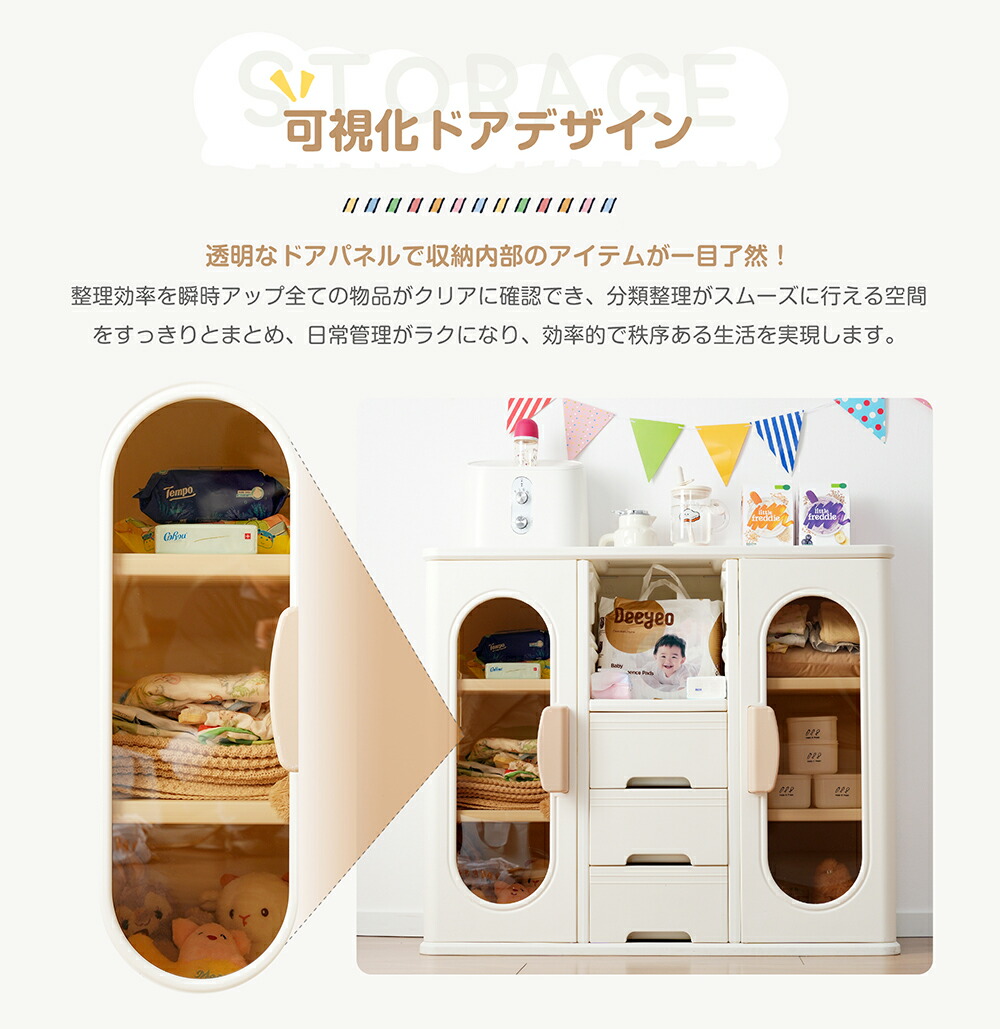 キャビネット キッズクローゼット おもちゃ収納 子供用クローゼット 多機能 キッズ用収納 大容量 整理棚衣類収納 小物収納 組立式キッズラック 収納ボックス 簡単組立 おしゃれ ホワ 引き出しや扉付き