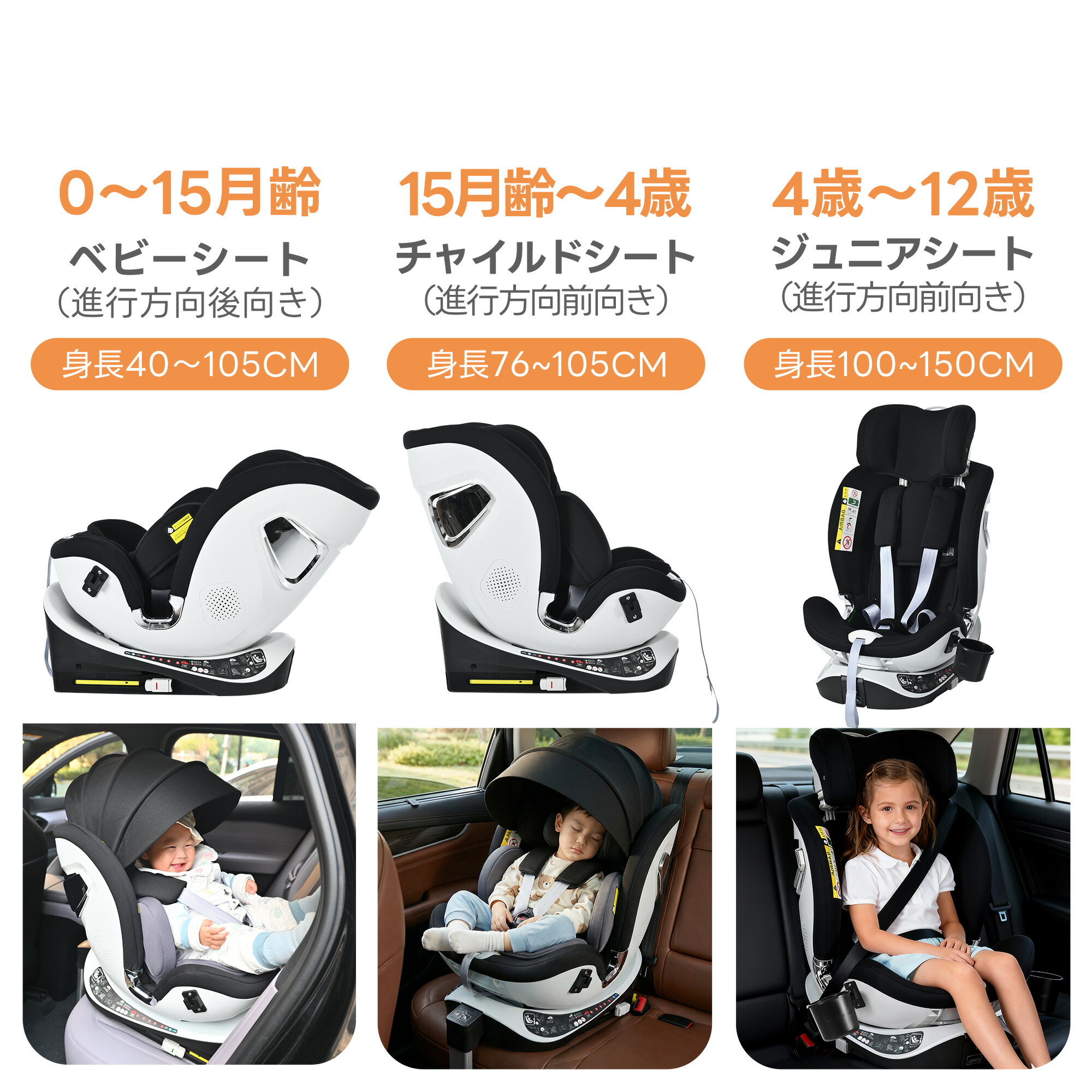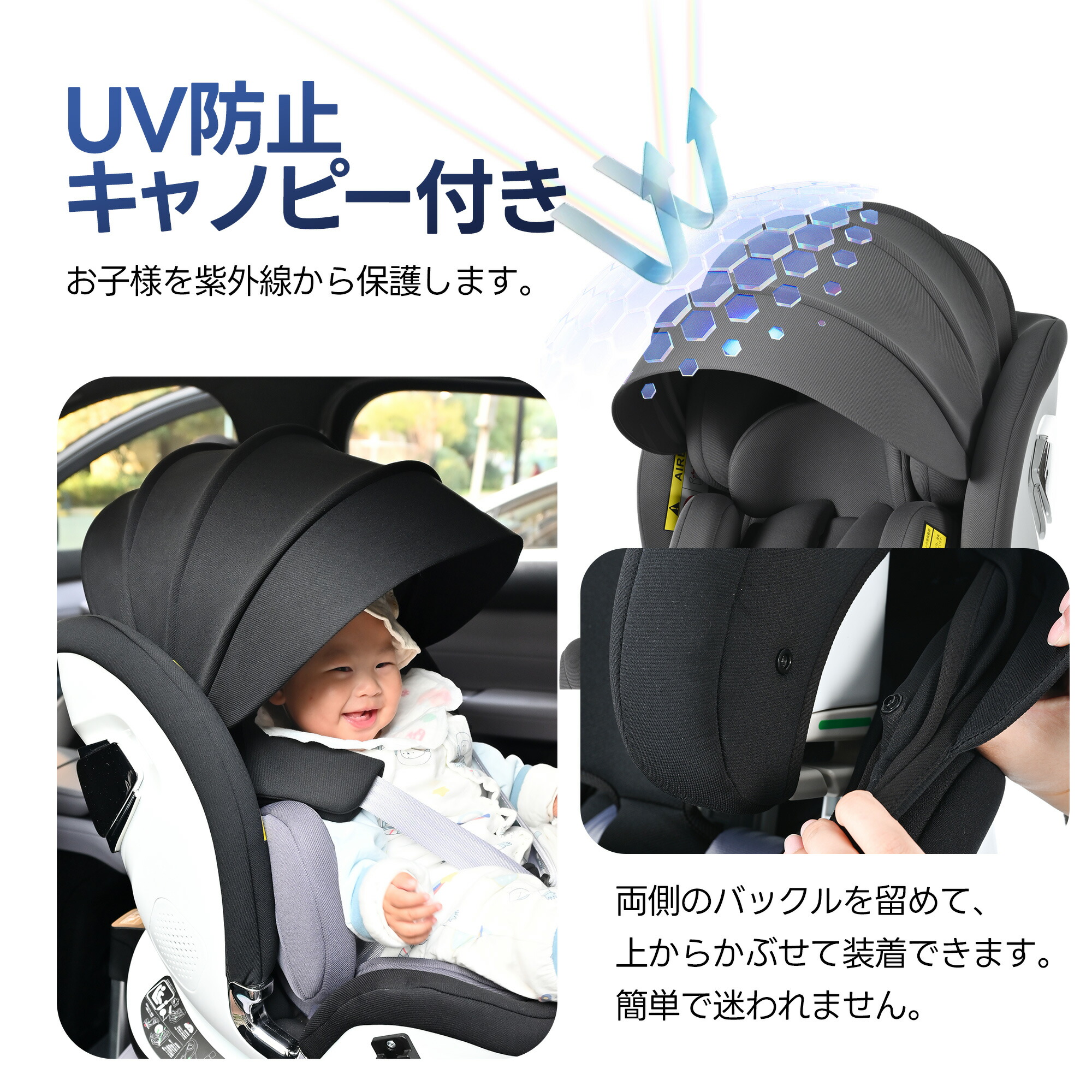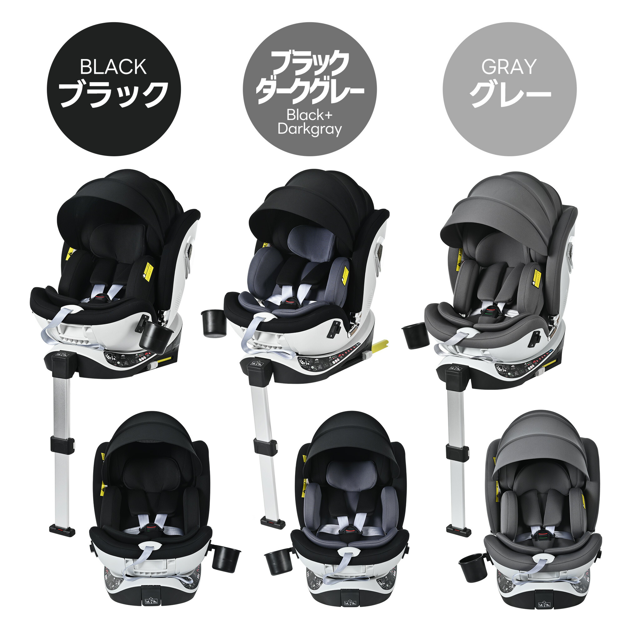 チャイルドシート ISOFIX 360 キッズ ベビー マタニティ 豊富 ブラック+ダークグレー グレー ブラック
