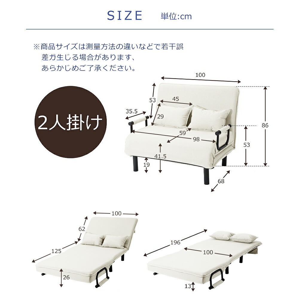 ソファーベッド 折りたたみ 2人掛け ベージュ グリーン ネイビーブルー ダークブラウン