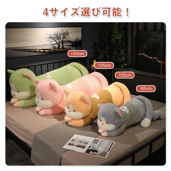 ネコ 抱き枕 ぬいぐるみ 可愛い 猫 おもちゃ ぬいぐるみ 新作 85cm 105cm 125cm 155cm ピンク ブラック グリーン グレー ブラウン オレンジ