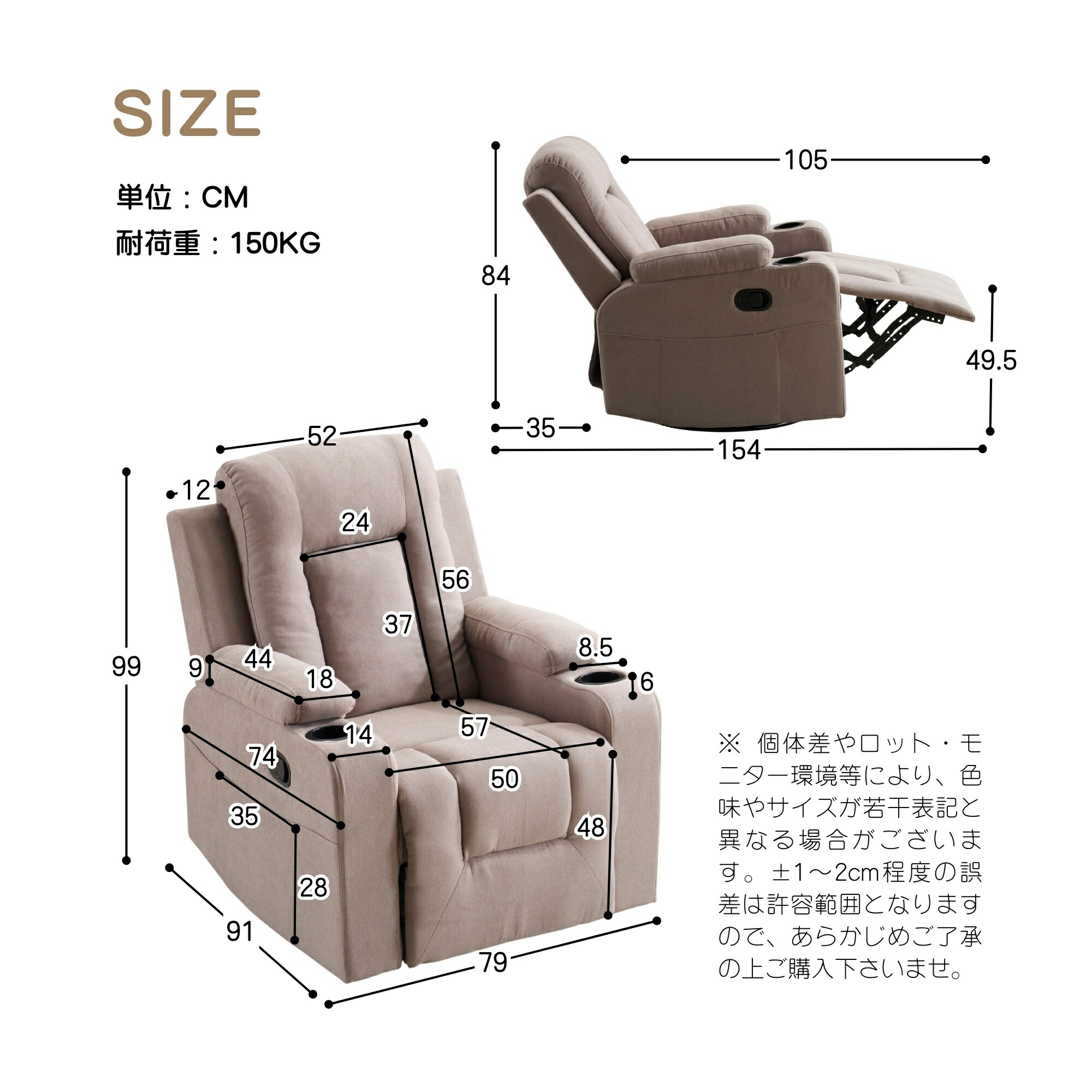 リクライニングソファ 1人掛け 165 ベージュ グレーブラウン ライトグレー