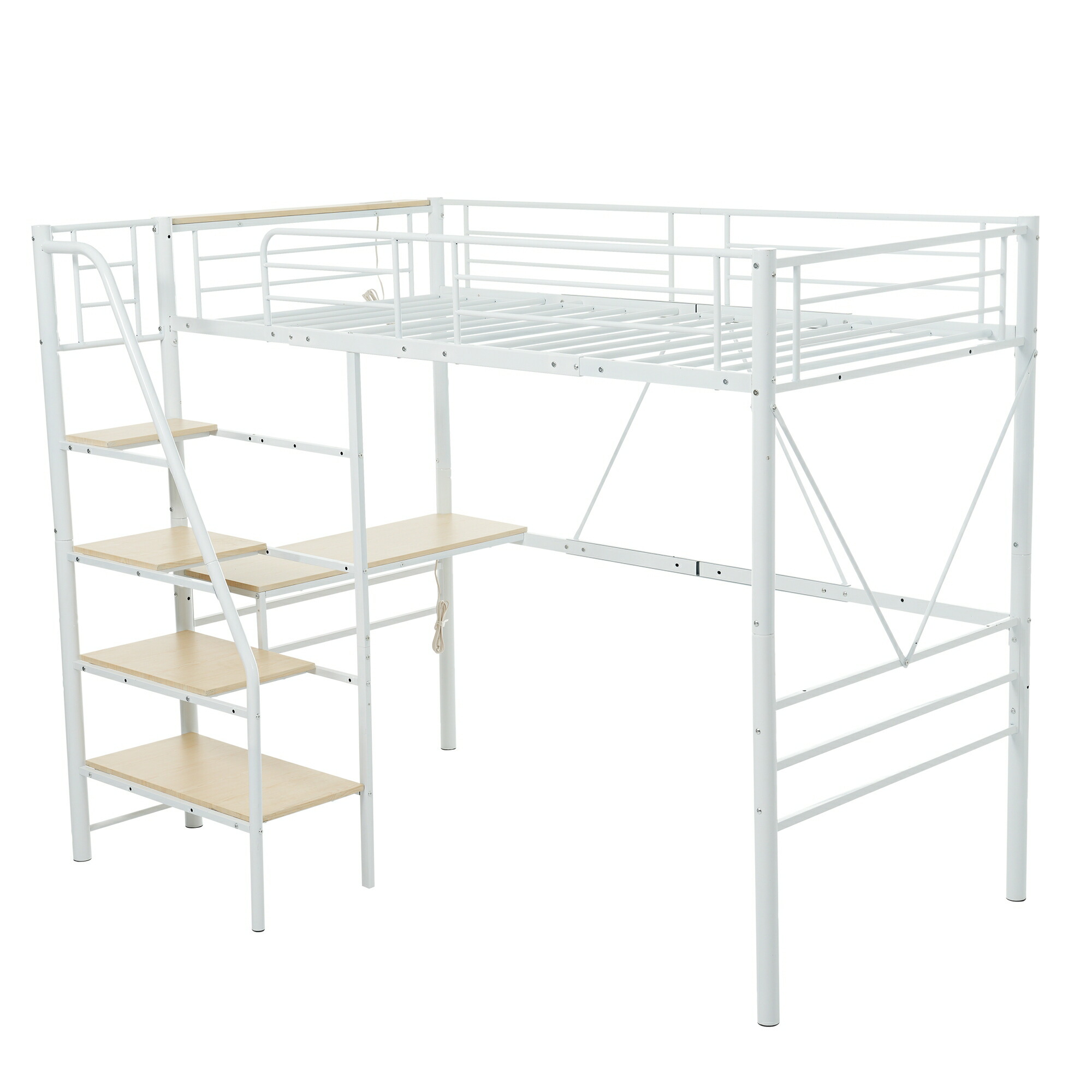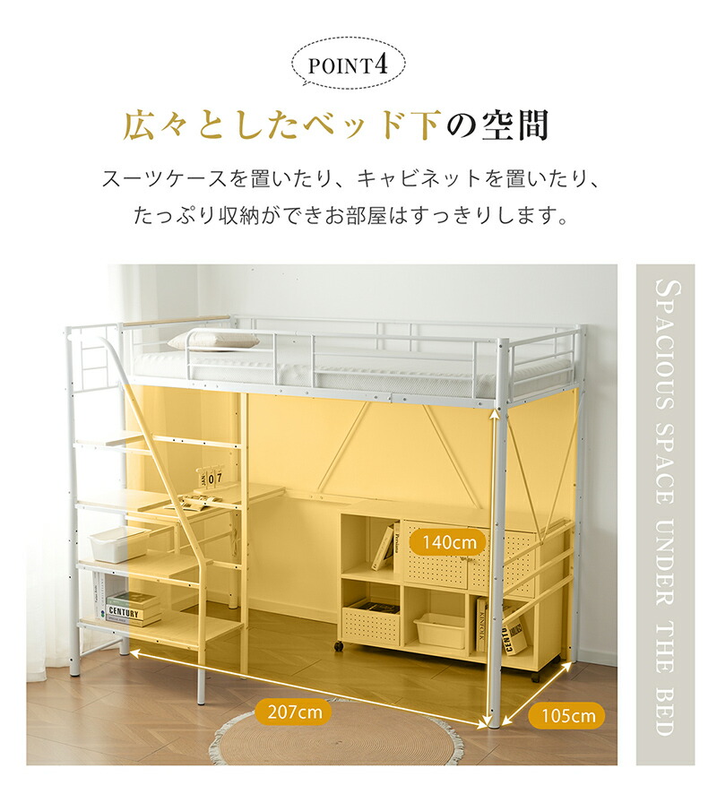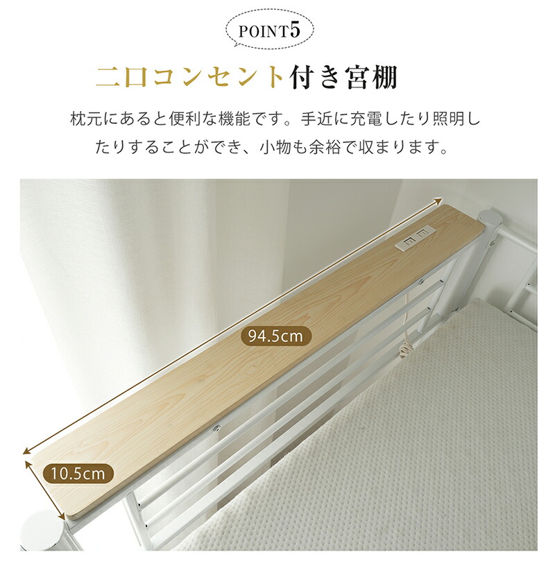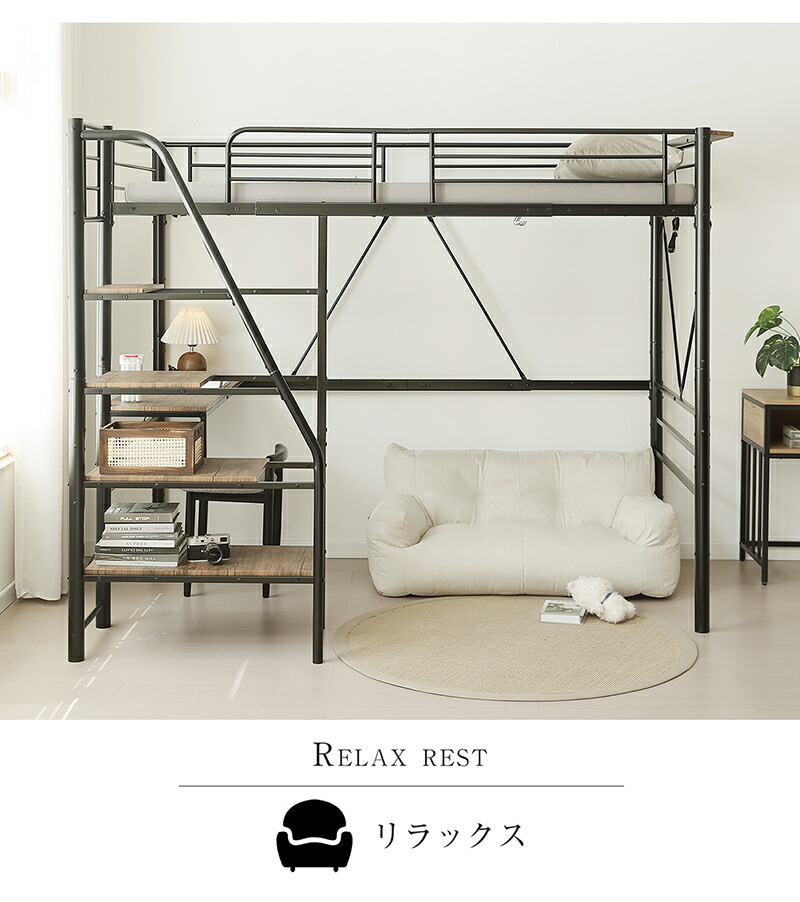 ロフトベッドシングル 階段式 パイプベ ブラック ホワイト