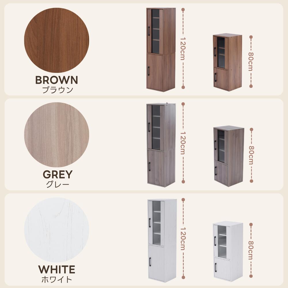 食器棚 収納付き 高さ80cm 120 80cm 120cm ブラウン グレー ホワイト
