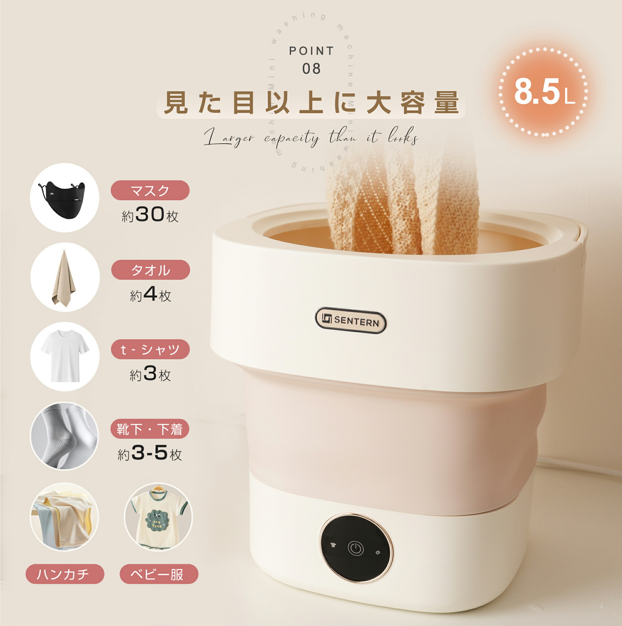 小型洗濯機 折り畳み洗濯機 8.5L