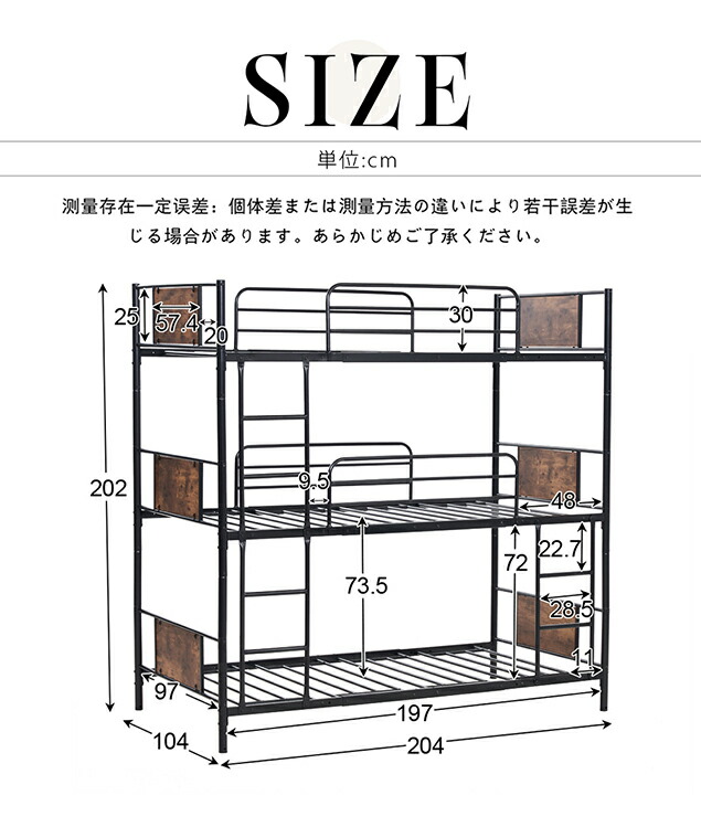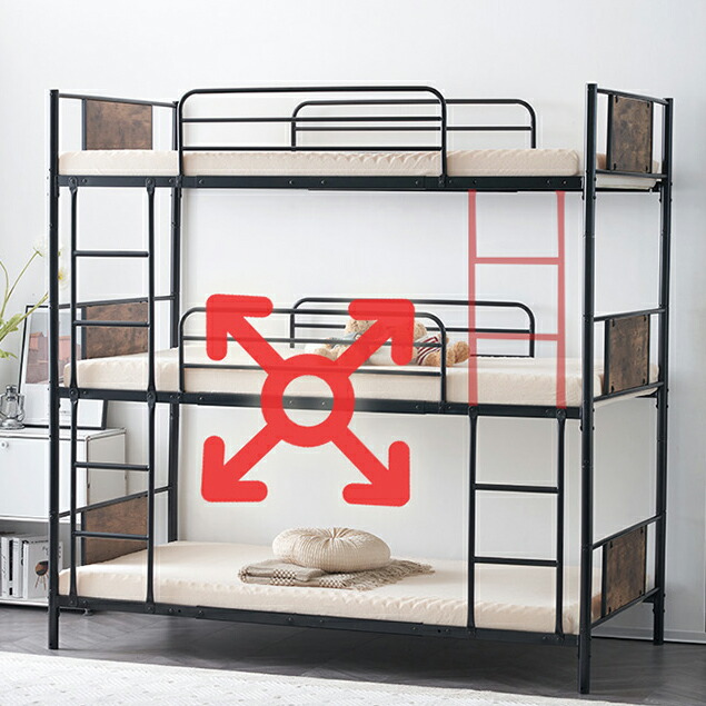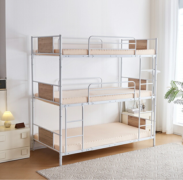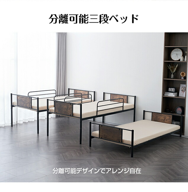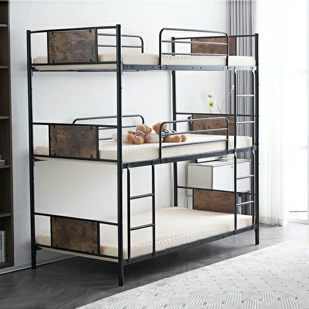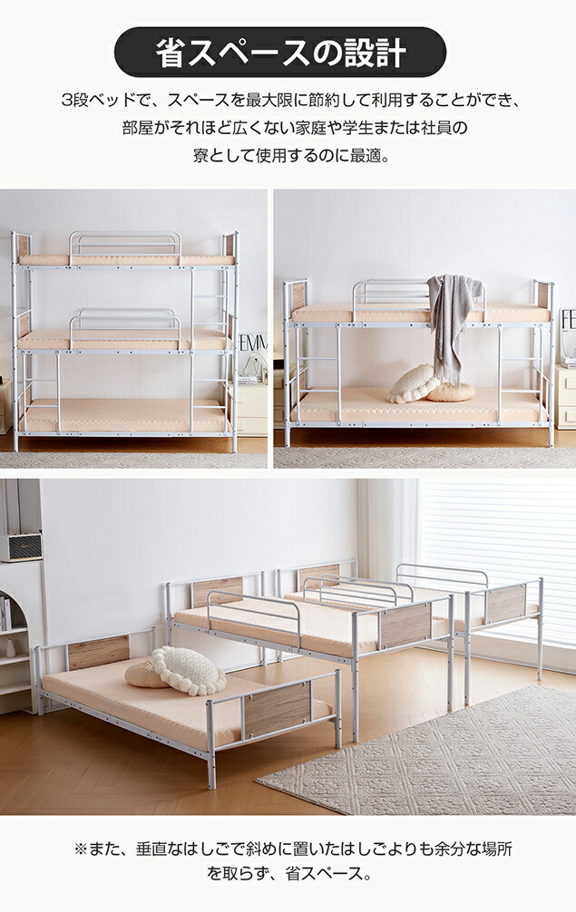 三段ベッド 子供 パイプ 大人用 ベッ ホワイト ブラック