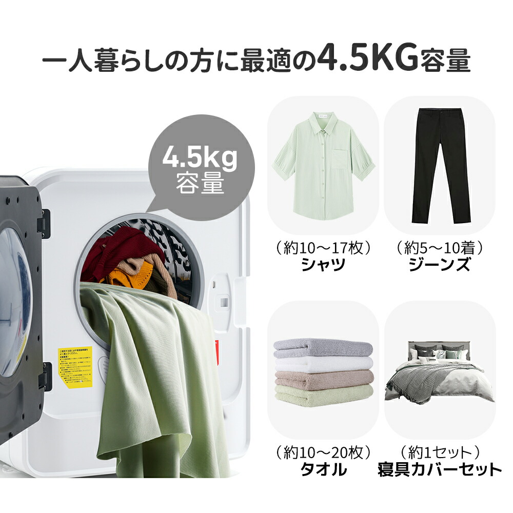 衣類乾燥機 小型 4.5kg 小型衣類