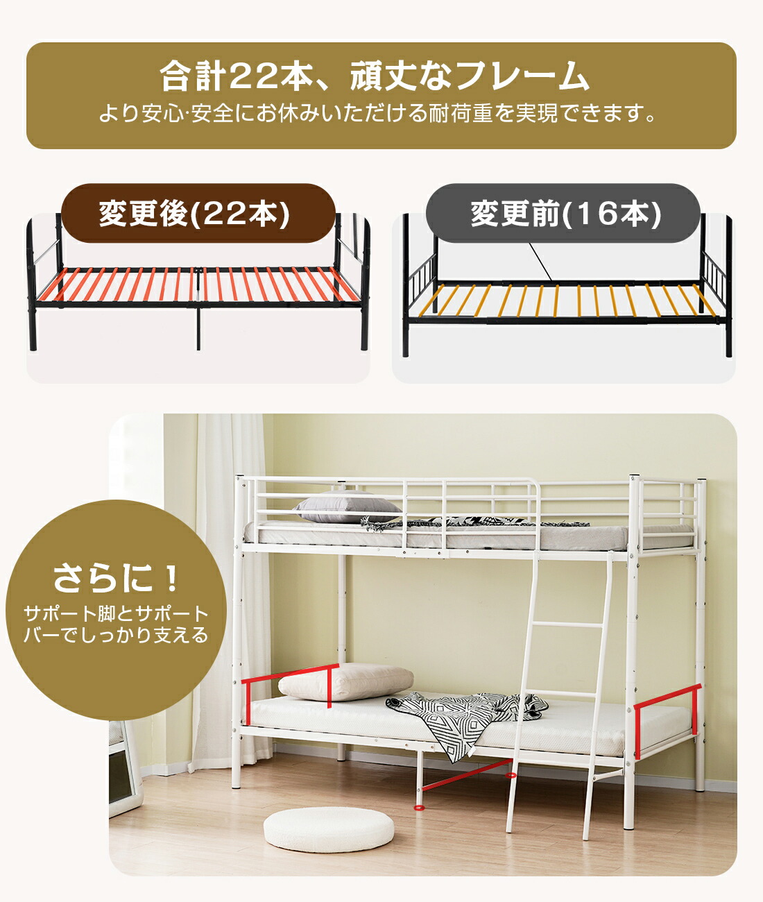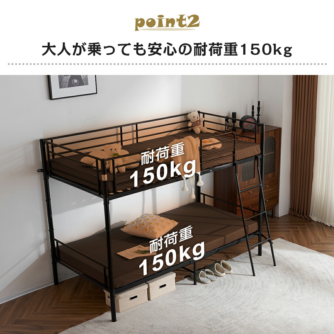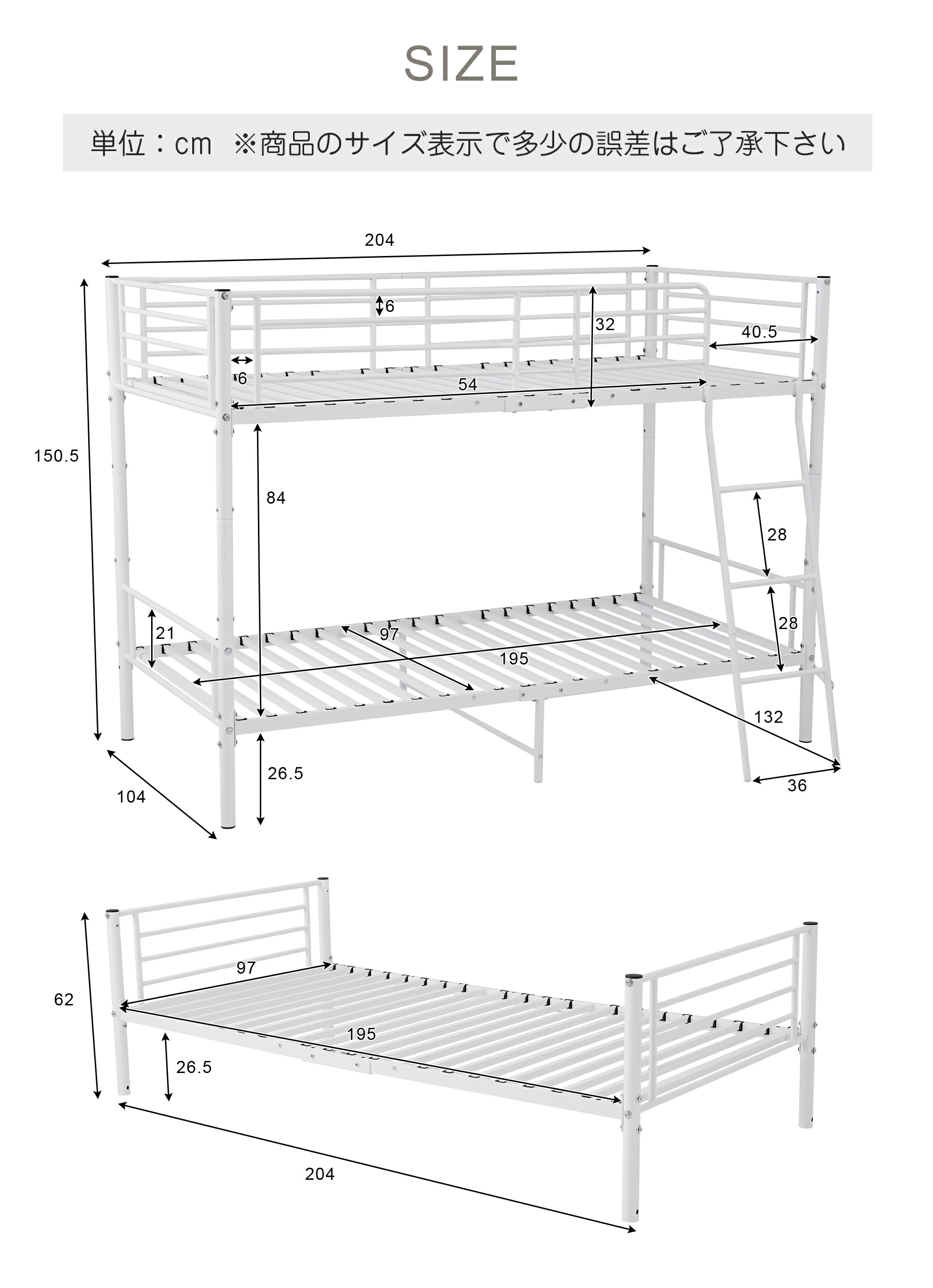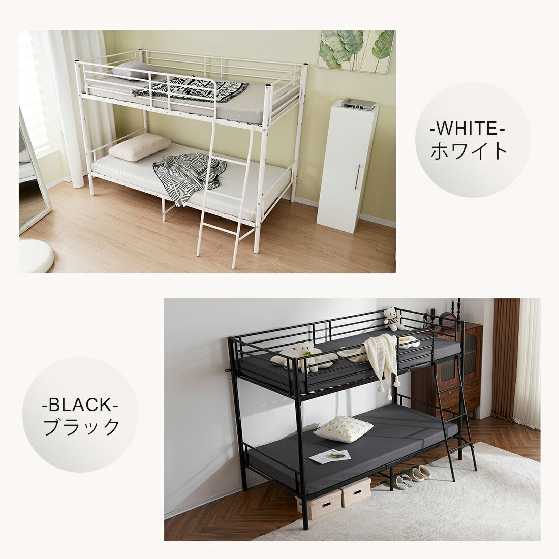 二段ベッド 2段ベッド シングル パイ 【ブラック】 【ホワイト】