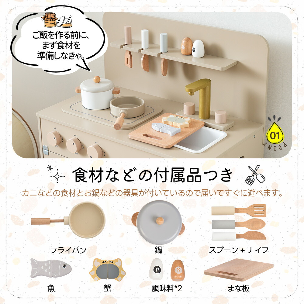 OSJ おままごと キッチン 木製 4 おもちゃ ままごと ごっこ遊びトイ 家事 早い者勝ち グレーピンク グレー ホワイト ピンク
