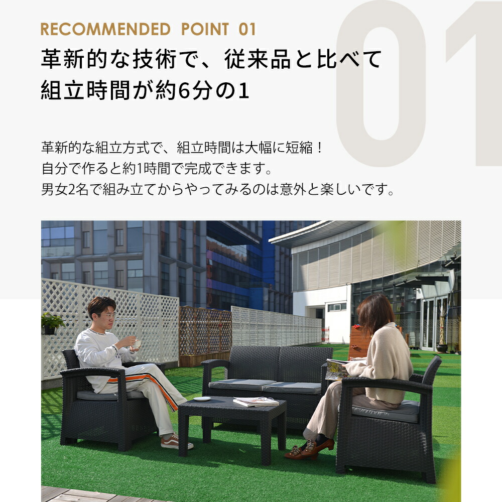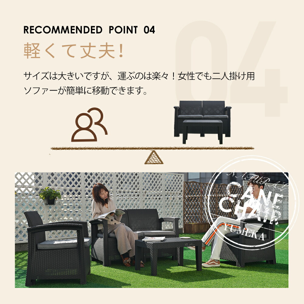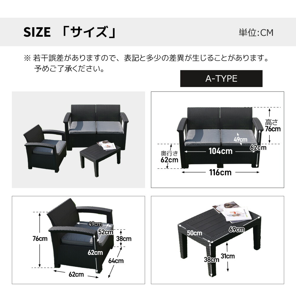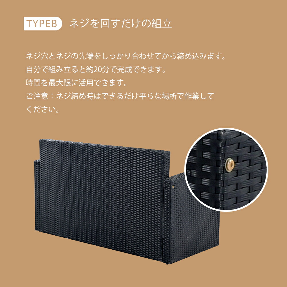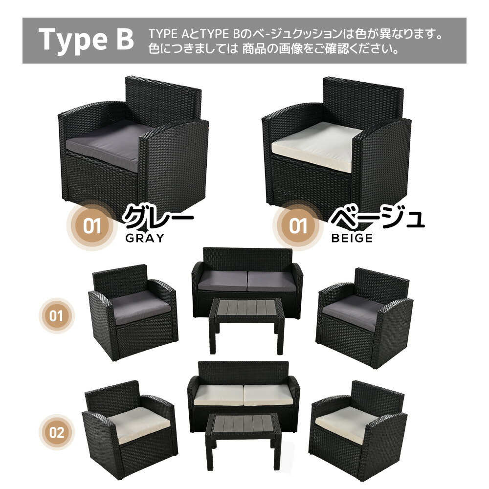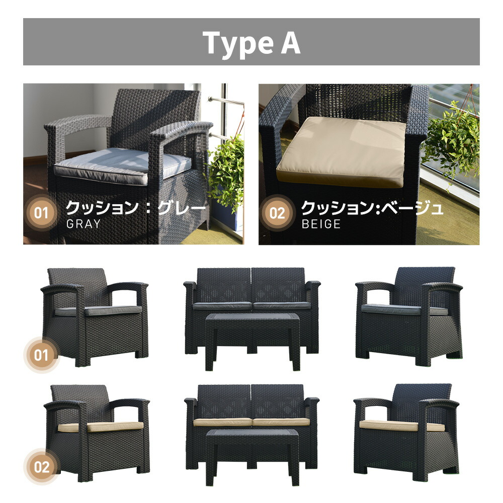 ラタン調 ガーデンファニチャー 4点 タイプAークッション:グレー タイプAークッション:ベージュ タイプBークッション:ベージュ タイプBークッション:グレー