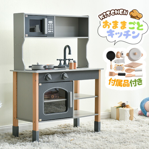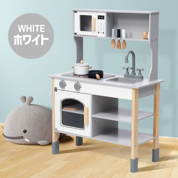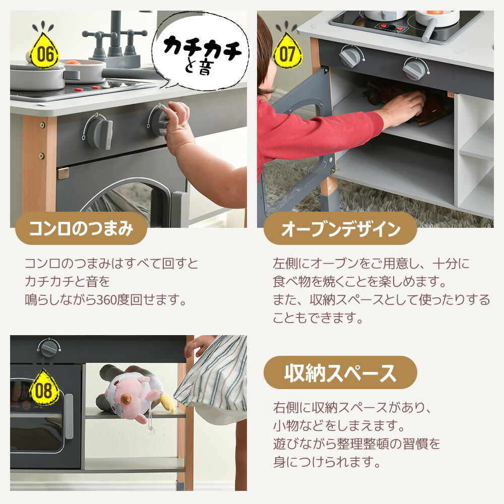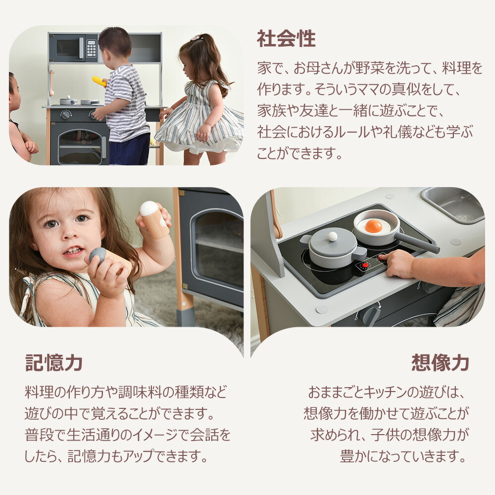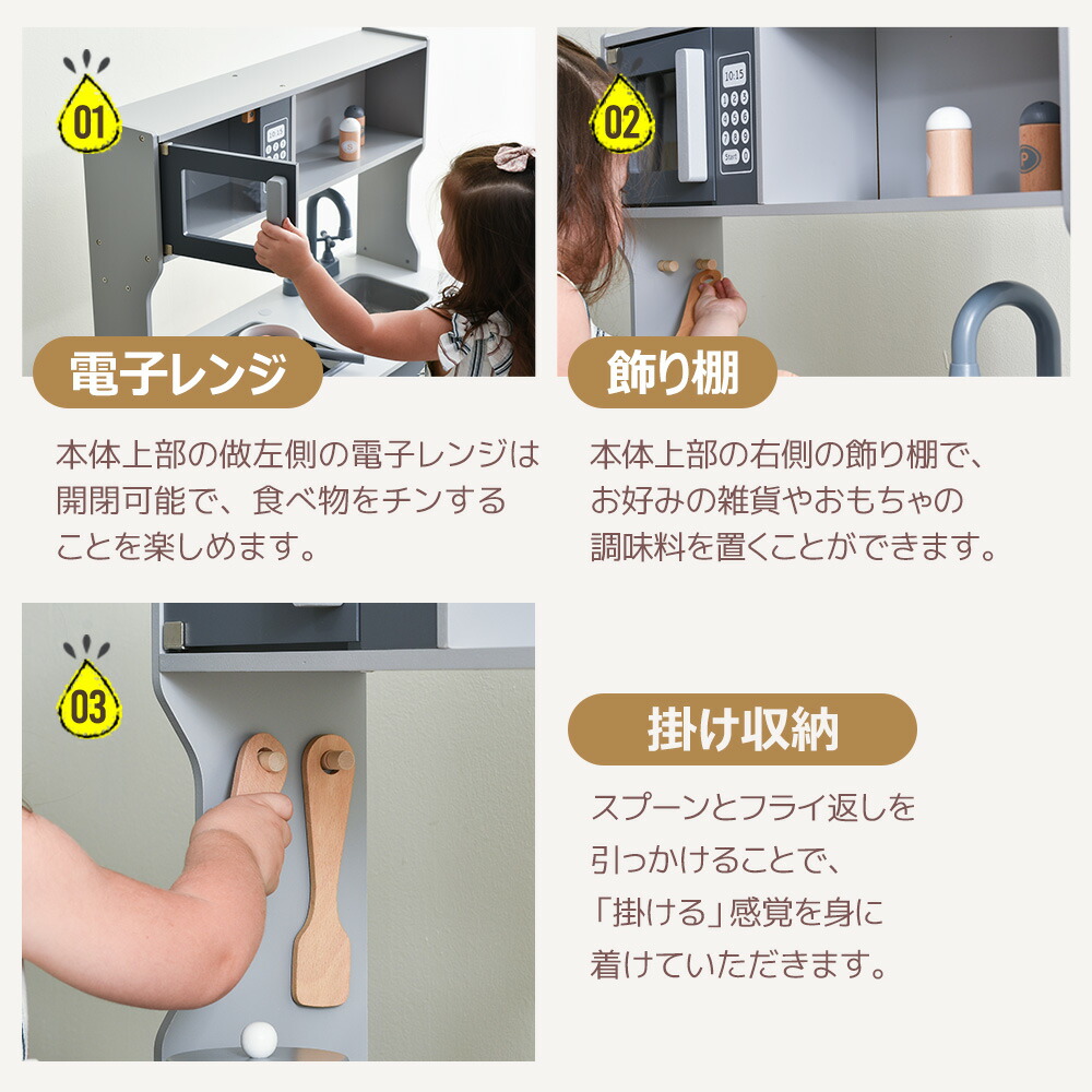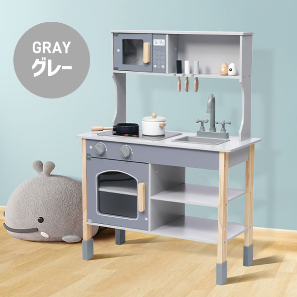 OSJ おままごと キッチン 木製 台 おもちゃ ままごと ごっこ遊びトイ 家事 豊富な品揃え グレー ホワイト