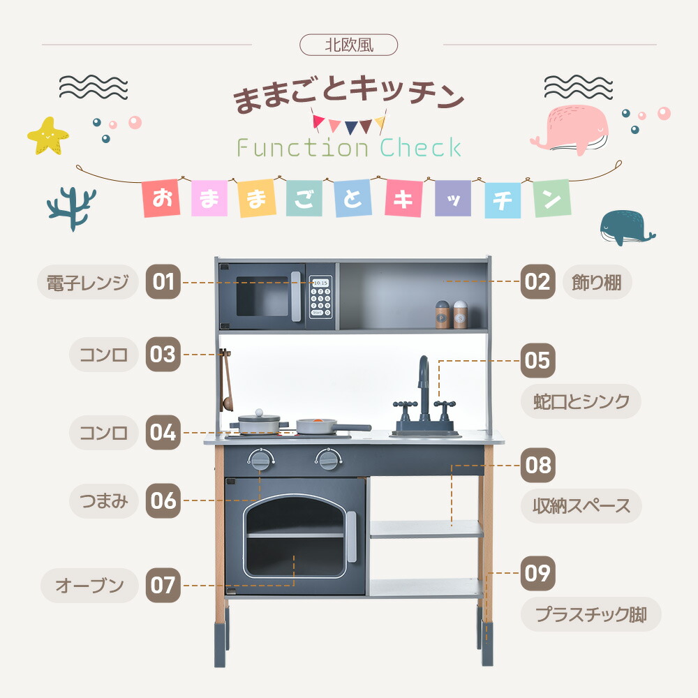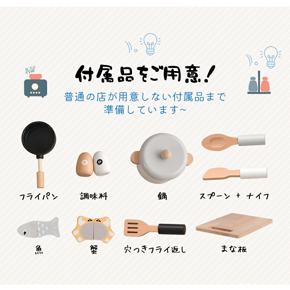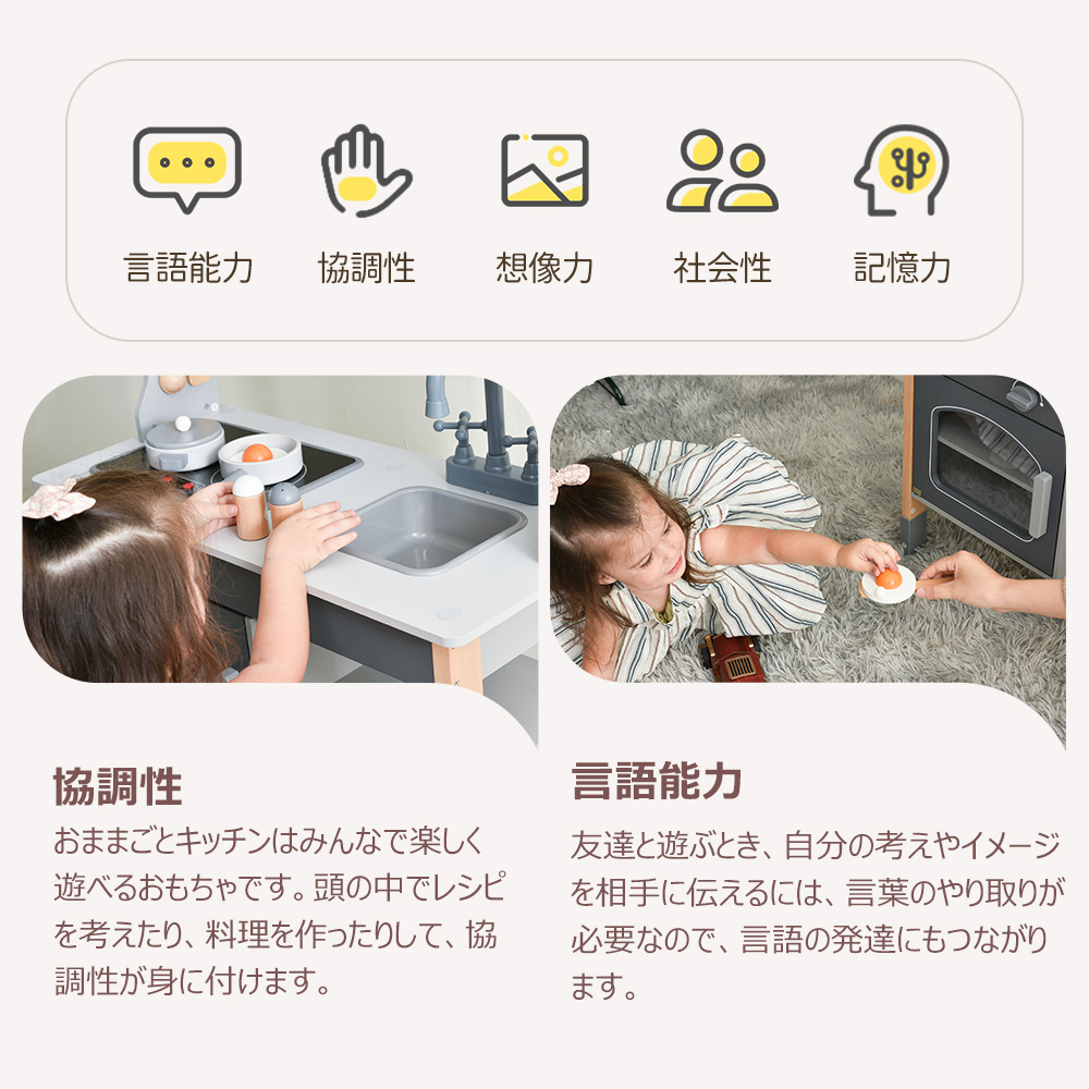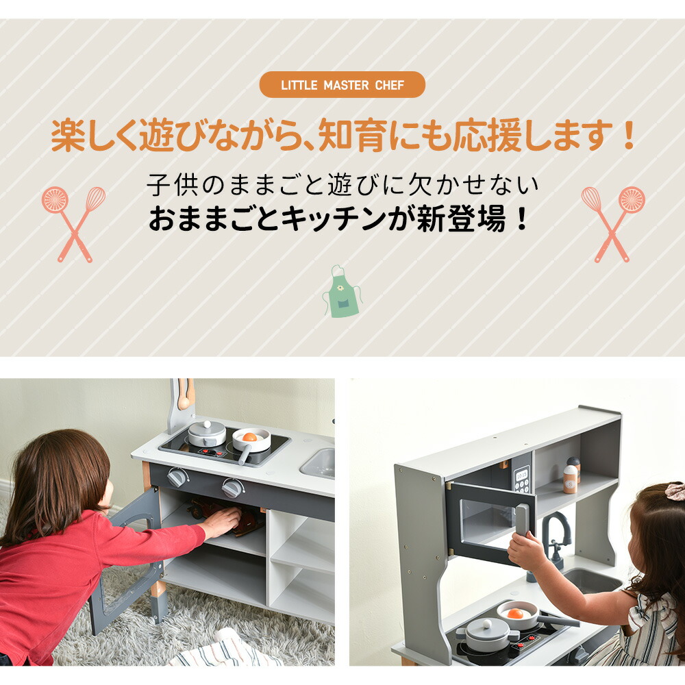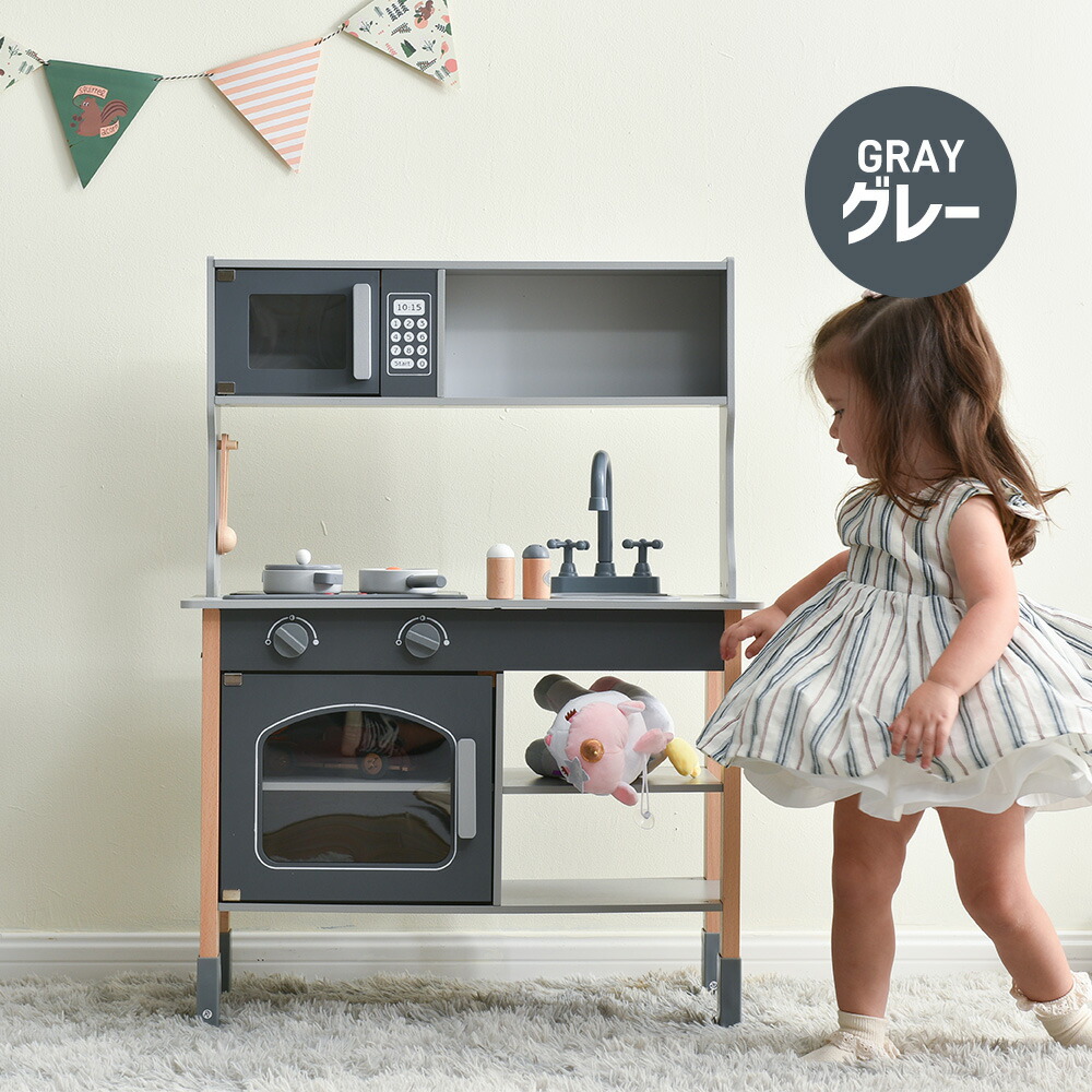 OSJ おままごと キッチン 木製 台 おもちゃ ままごと ごっこ遊びトイ 家事 豊富な品揃え グレー ホワイト