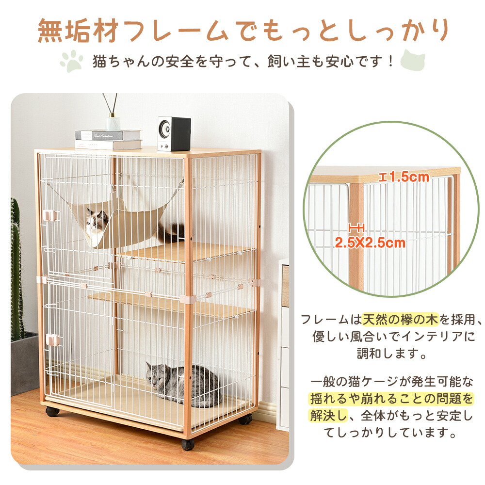 猫 ケージ キャットケージ 2段 木製 ペット ペットグッズ 通販 ナチュラル チーク色