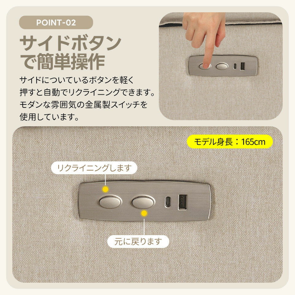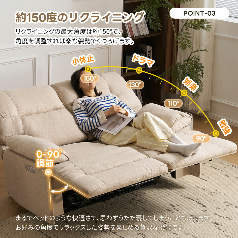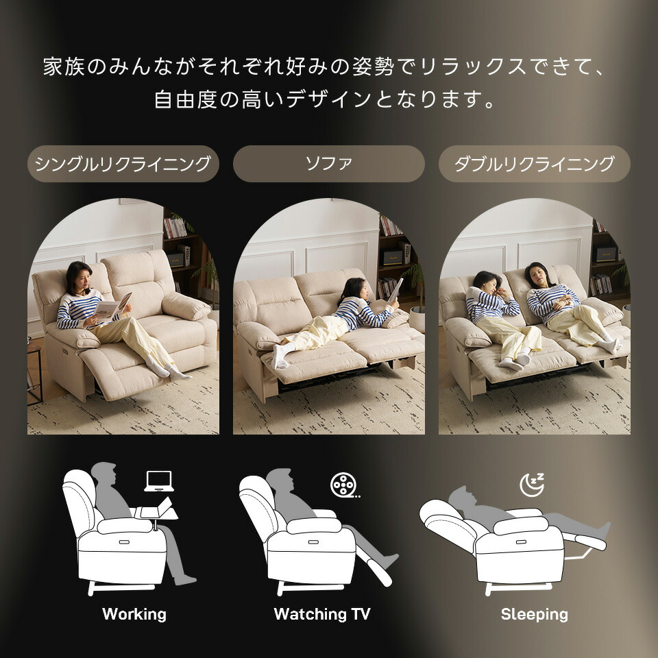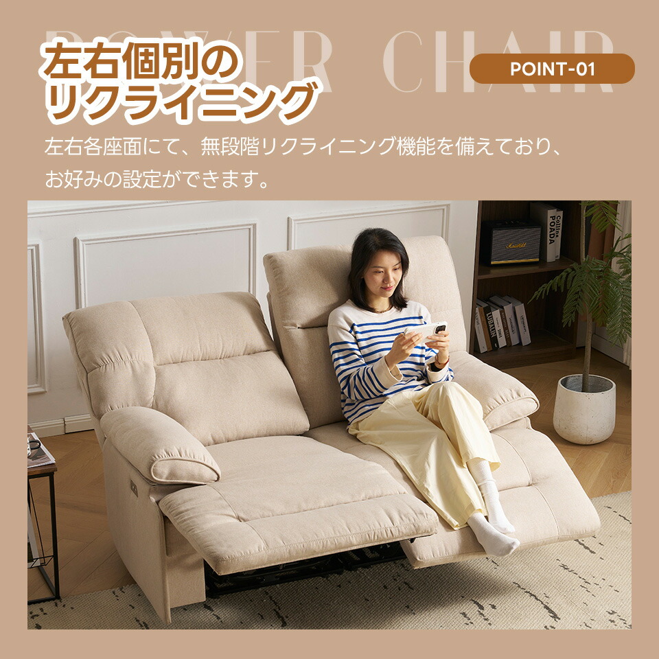 贅沢 リクライニングソファ 2人掛け ベージュ グレ―
