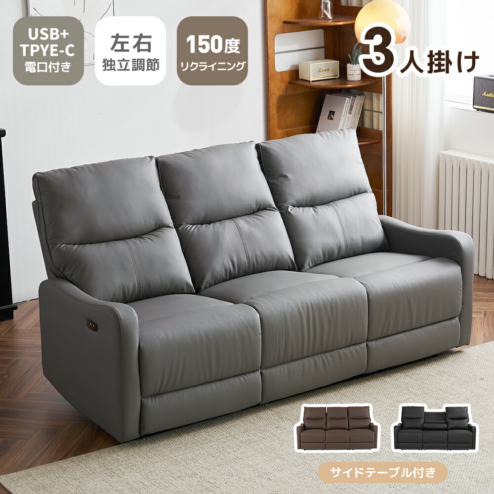 リクライニングソファ 3人掛け 電動 グレー ブラック ブラウン