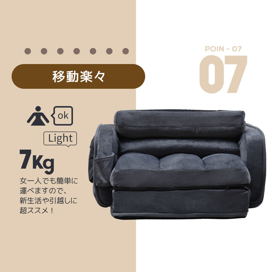 座椅子 42段階 肘掛け サイドポケッ ベージュ ブラウン ダークグレー ライトグレー グリーン ブルーグレー