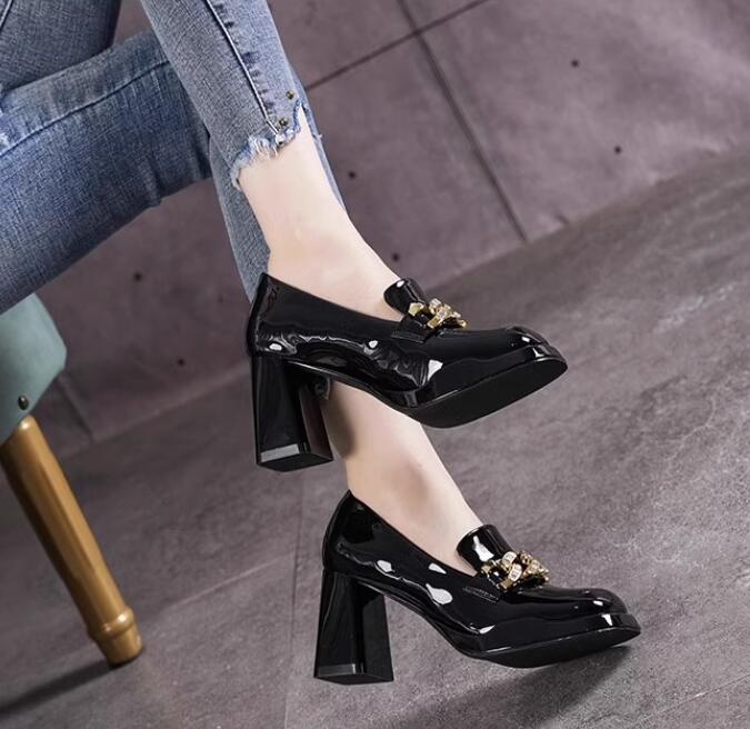 ハイヒール パンプス レディース靴 厚 靴 早い者勝ち ブラック カーキ 34(22.0cm) 35(22.5cm) 36(23.0cm) 37(23.5cm) 38(24.0cm) 39(24.5cm) 40(25.0cm)
