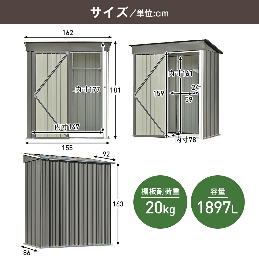 物置 屋外 スチール 倉庫 戸外収納庫 TYPE A【棚付き】 TYPE B【棚なし】 ブラウン グレー