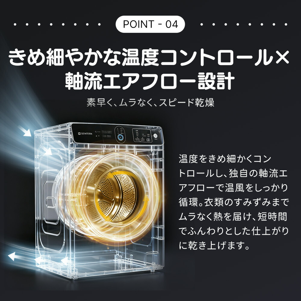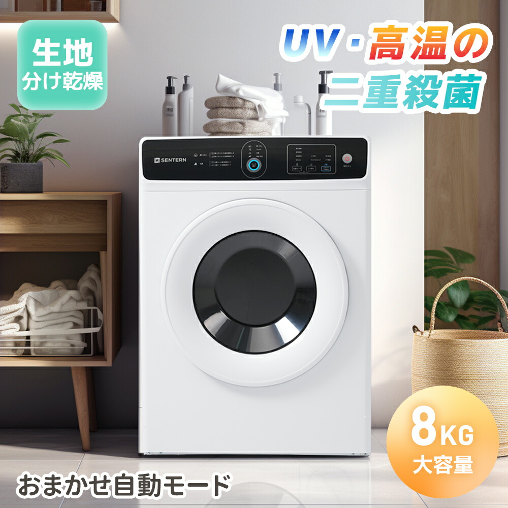 SENTERN 衣類乾燥機 8kg 家庭用 大容量 大型 乾燥機 自動乾燥 温度調節 花粉症対策 除湿 高温除菌 シワ取り 布団乾燥 アイロン 静音 ドラム式 湿気対策 梅雨対策 チャイルドロック