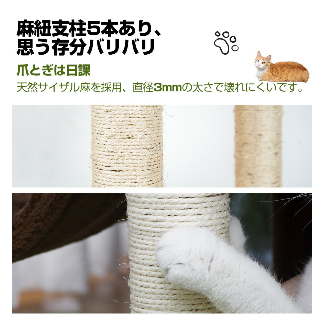 キャットタワー ハンモック付き 据え置 猫用品 キャットタワー 新登場! ベージュ グレー ブラウン