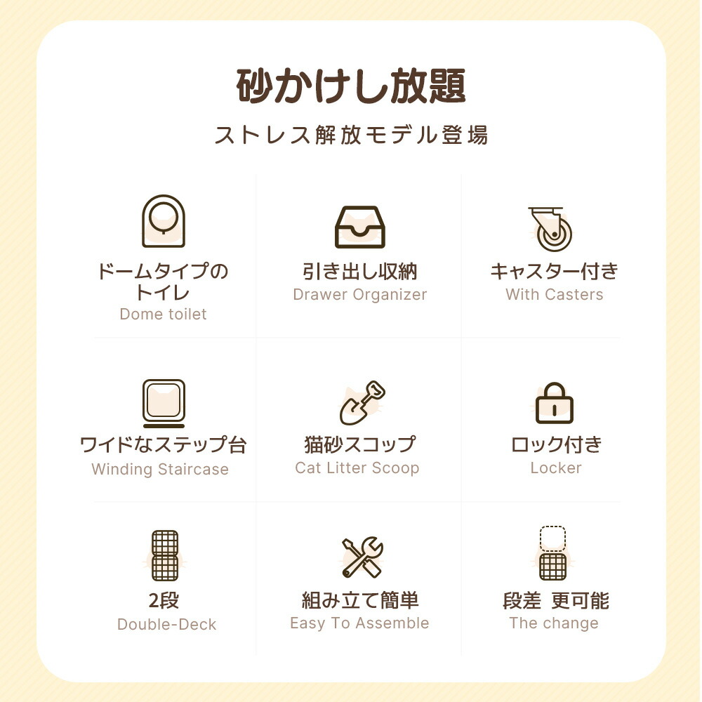 猫 ケージ 掃除しやすいトイレ キャットケージ 2段 幅広設計 引き出しトレー トイレ付き ドア付き 猫砂の飛び散り防止 自由組み合わせ 多頭飼い ゲージ キャスター付き 脱走防止 キャットハウス