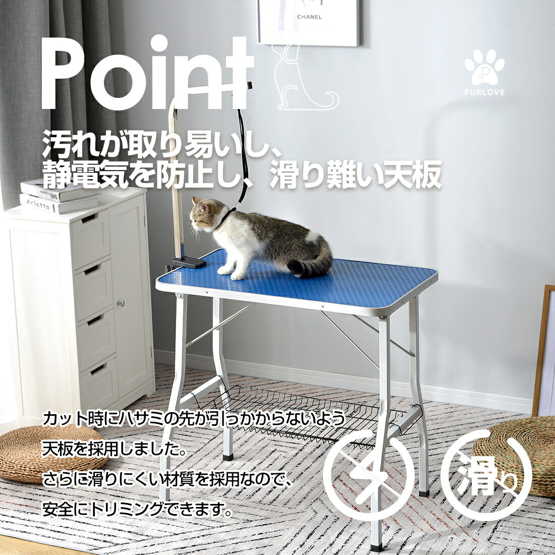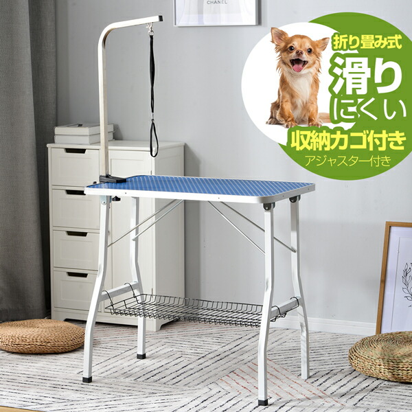トリミングテーブル 収納カゴ付 折りた ブルー ピンク