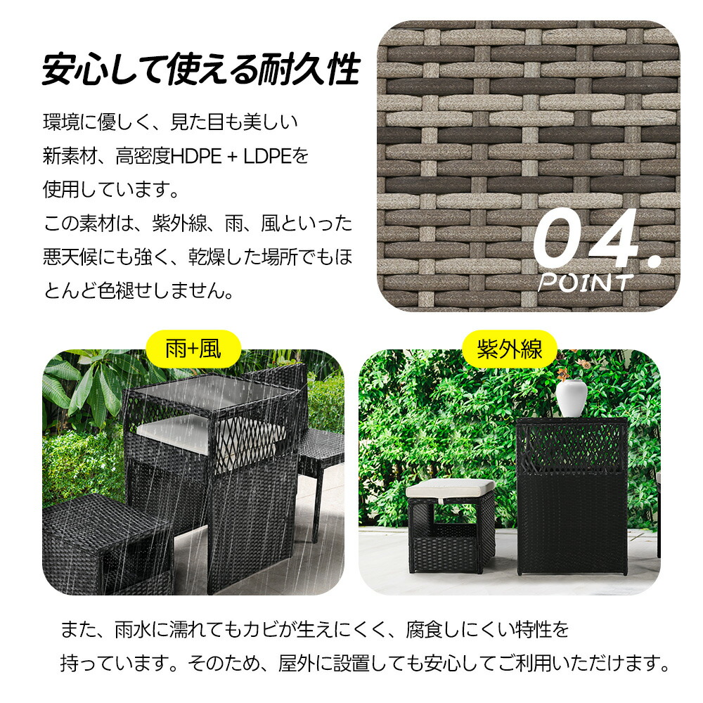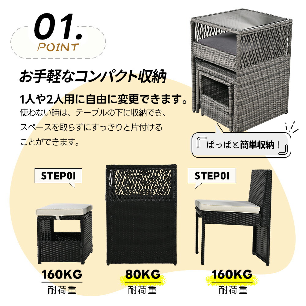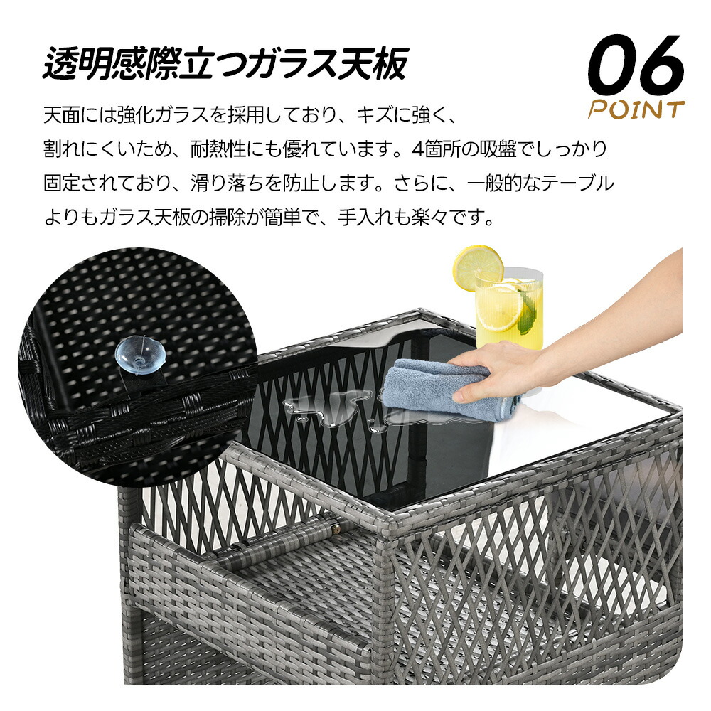 ガーデン テーブル 3点セット ラタン ブラック グレー ベージュ グレー