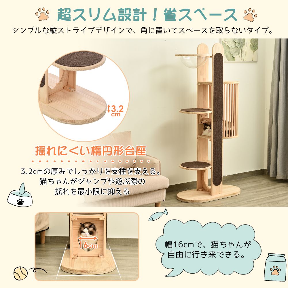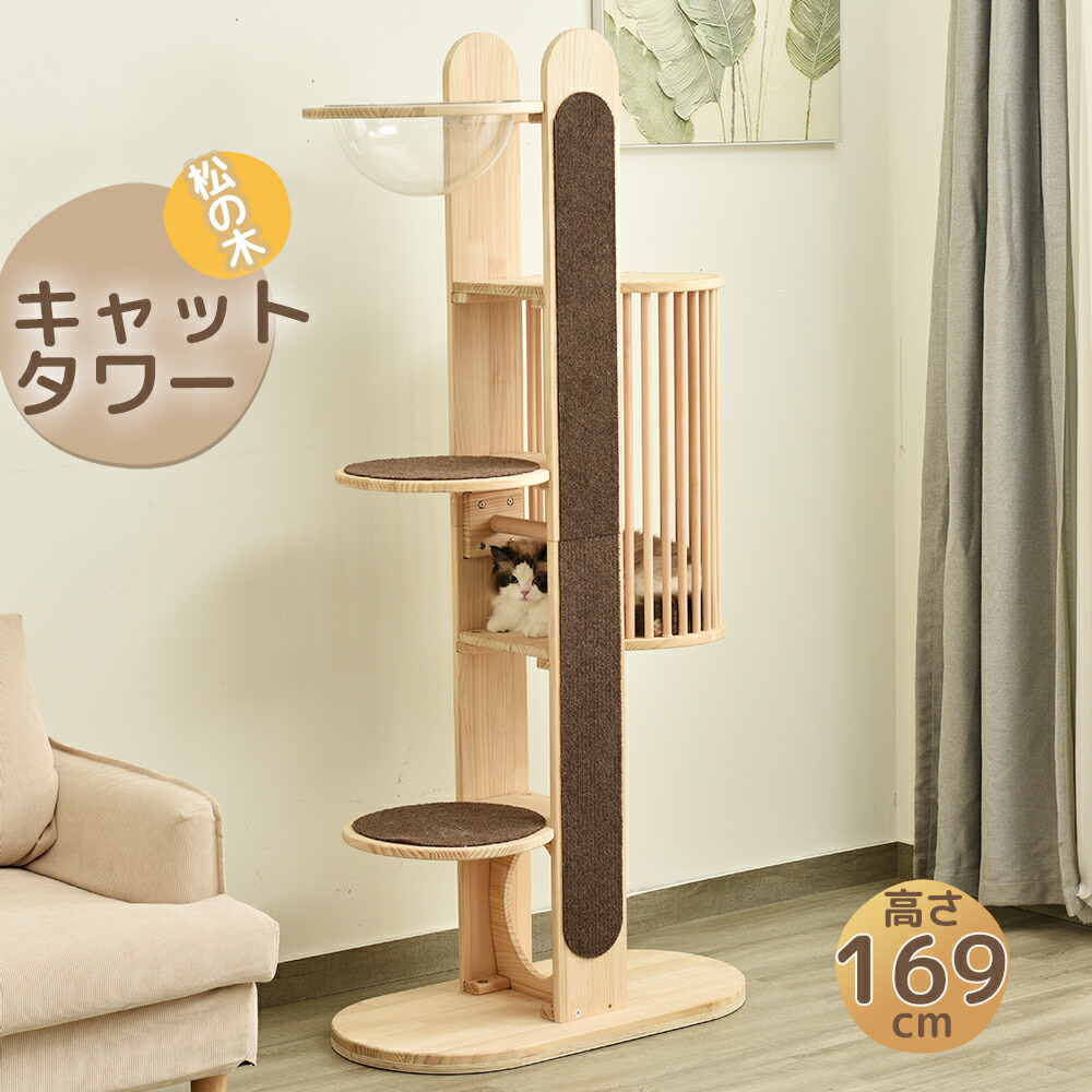 キャットタワー 据え置き 木製 天然木 ペット ペットグッズ 続々登場