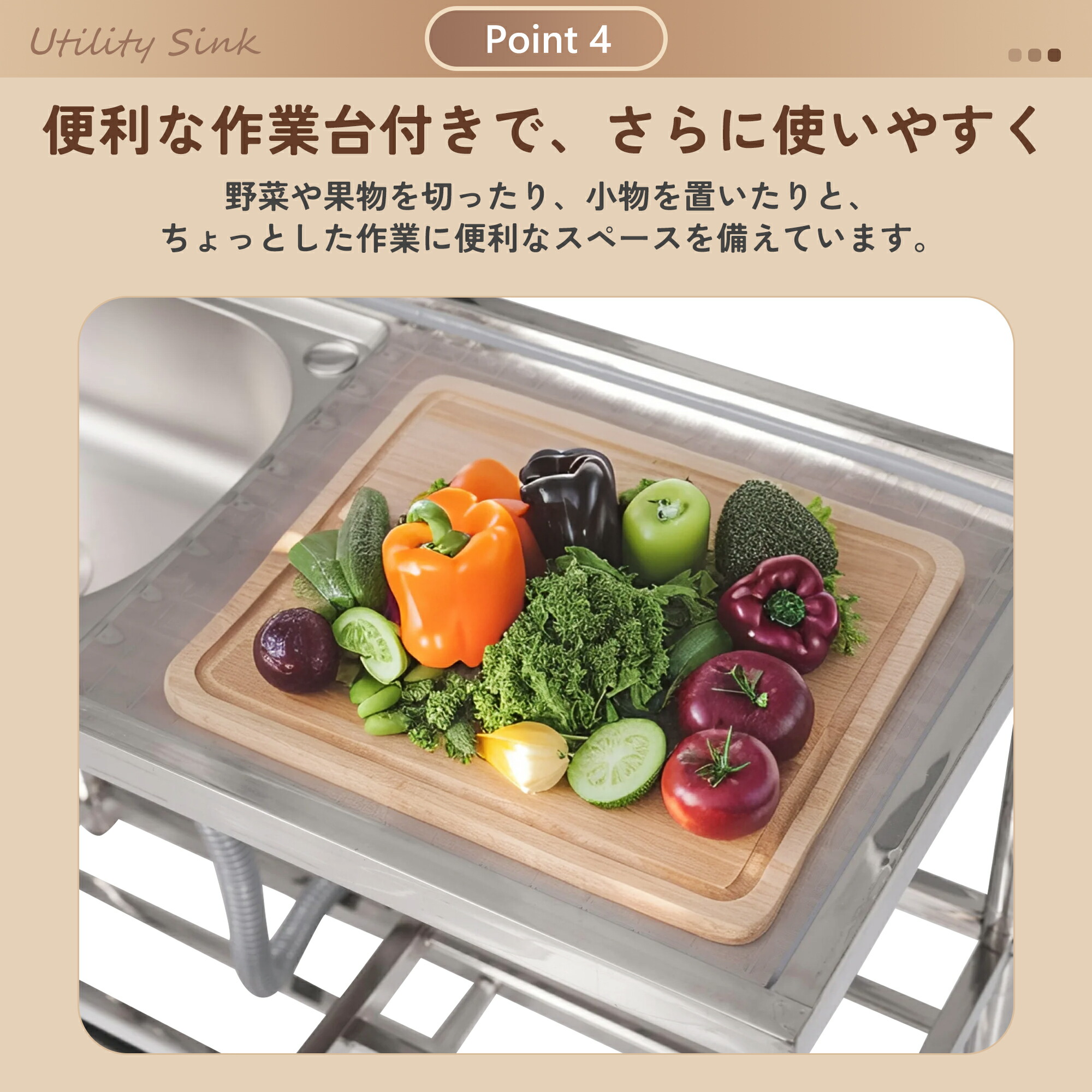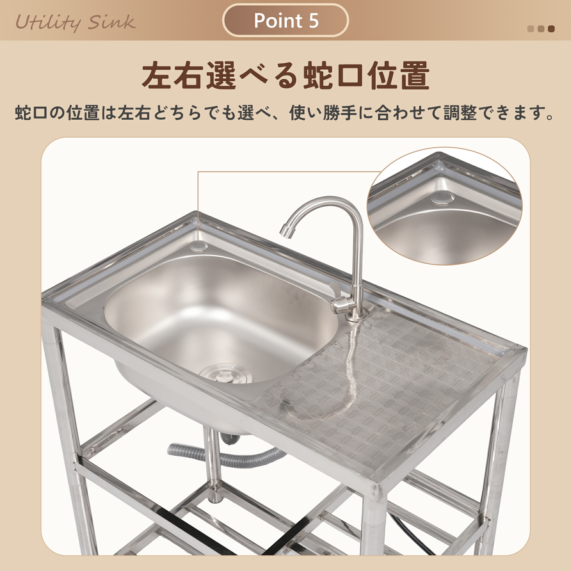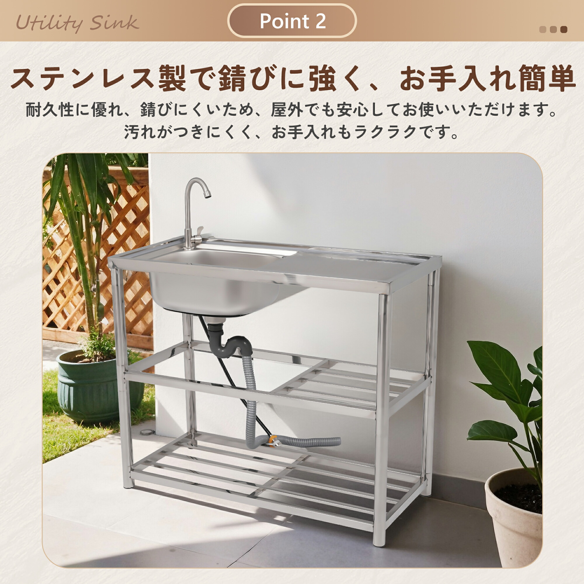 流し台 シンク 屋外 ガーデンシンク ステンレス 水栓付 庭 簡易流し台 堅めのシンク シンク下 収納 厚みあり
