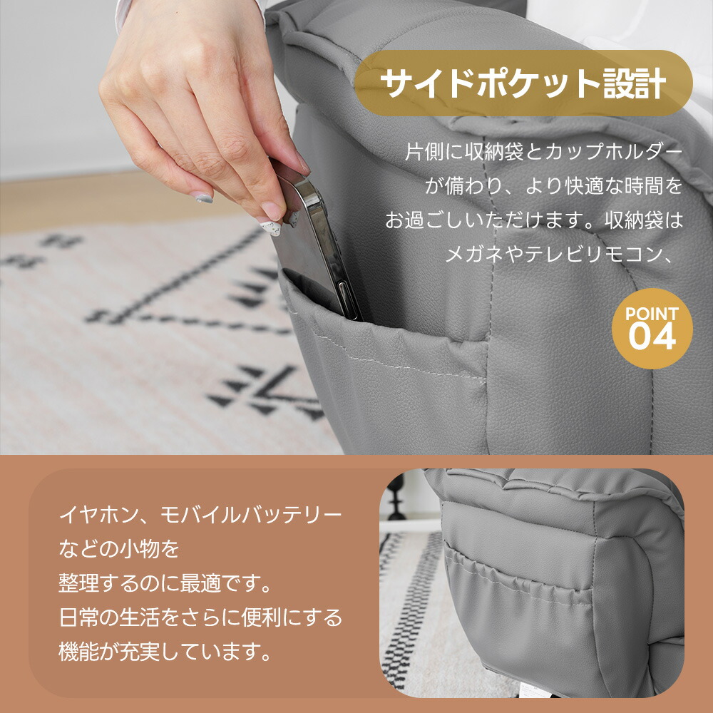 座椅子 42段階 肘掛け サイドポケッ コーヒー ライトグレー ブラック