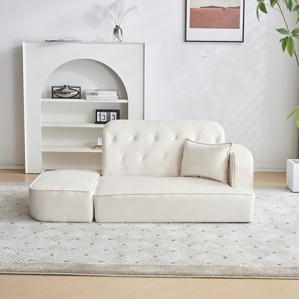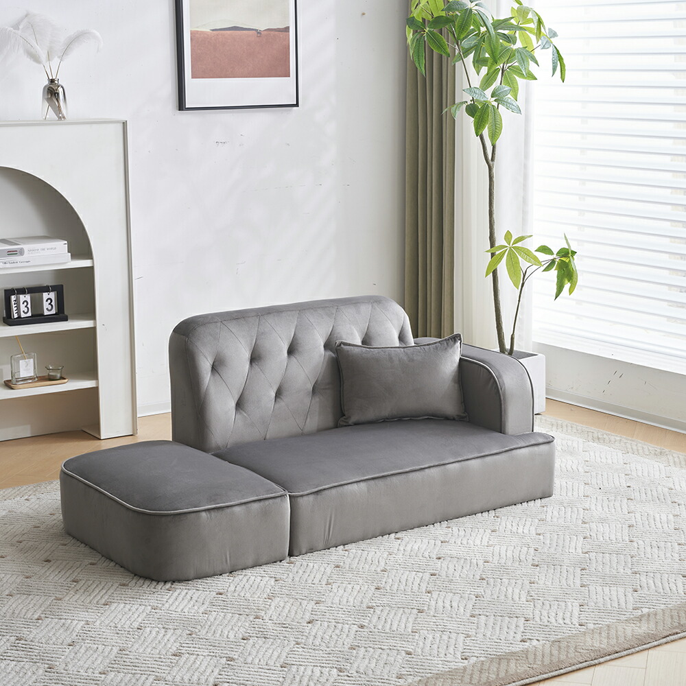 ソファー 2人掛け オットマン付き カ ホワイト グレー