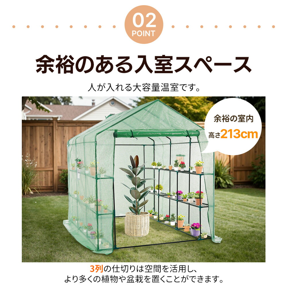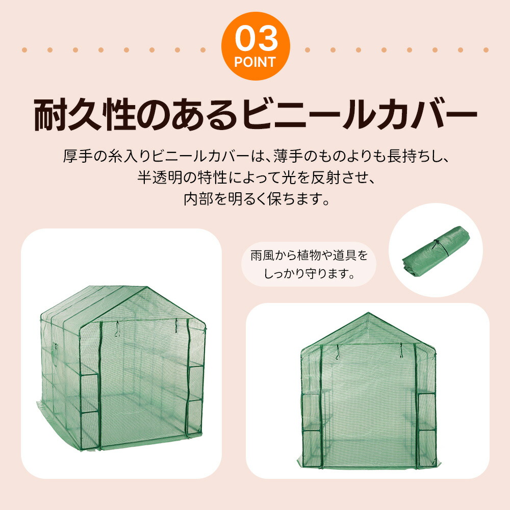ビニールハウス ビニール温室 左右2段 温室 家庭用 大型 家庭菜園 ガーデンハウス フラワーハウス ラック ビニール カバー 組立式 菜園 花壇 観葉植物 雨よけ 霜よけ 園芸温室