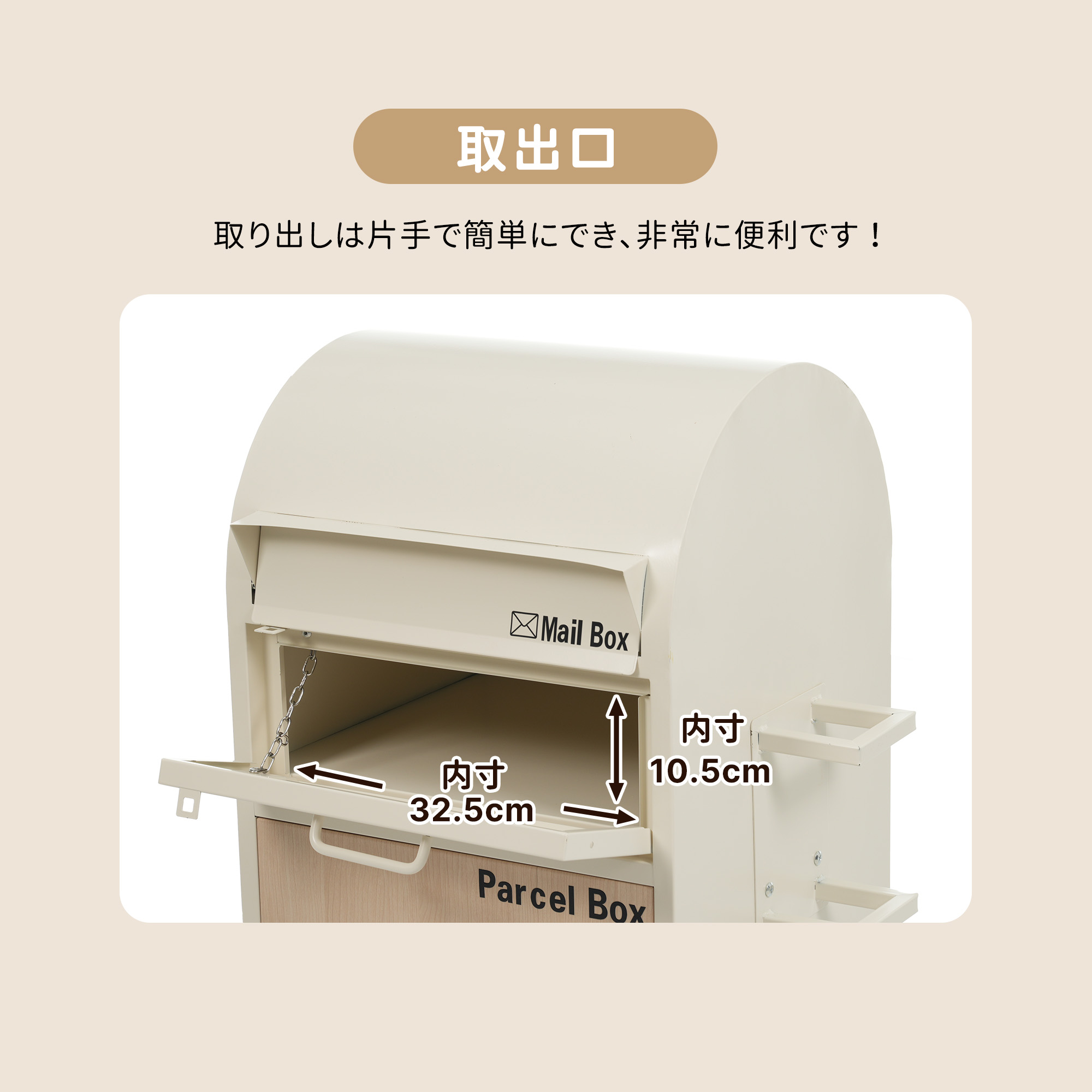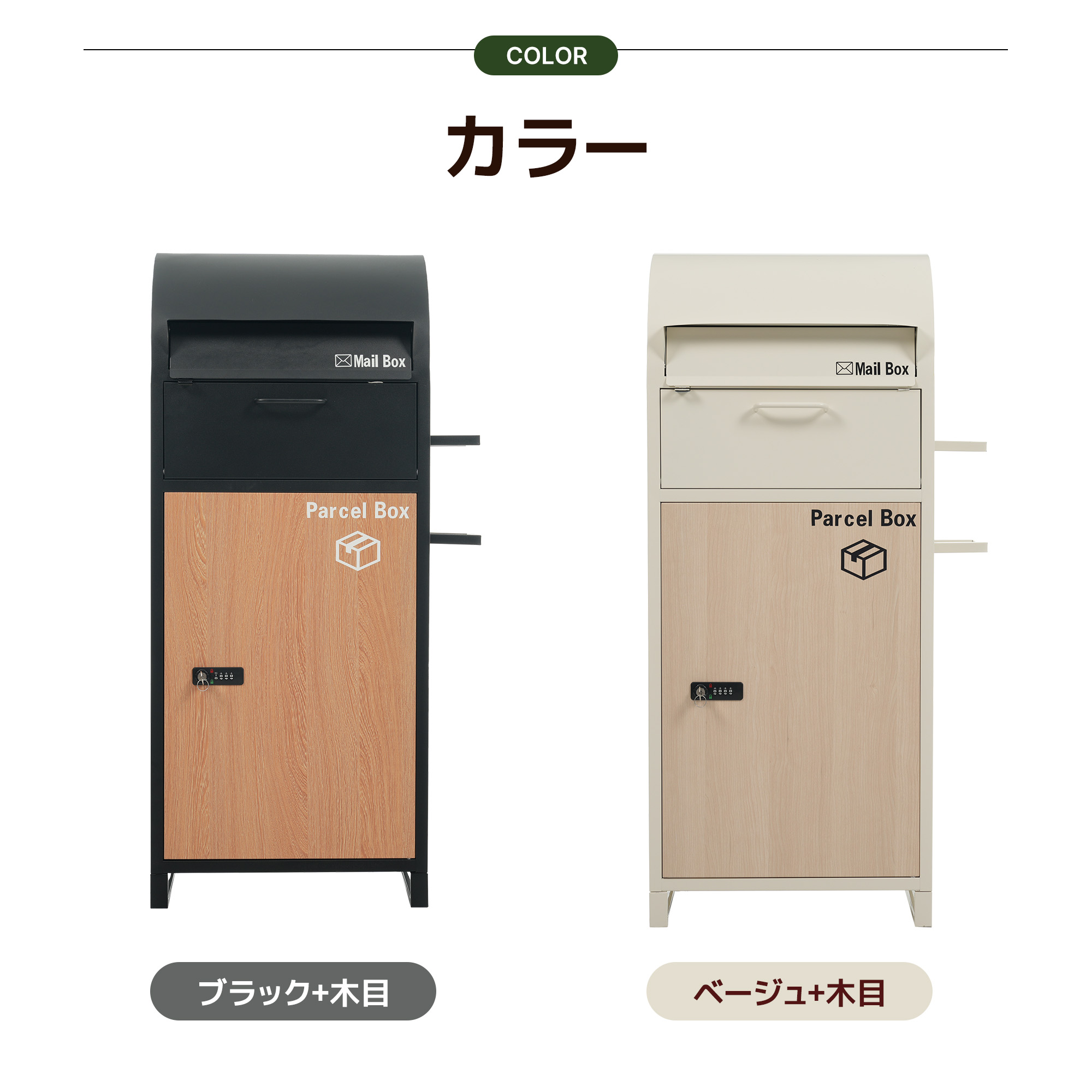宅配ボックス 据置型 大容量 投函口 ベージュ+木目 ブラック+木目