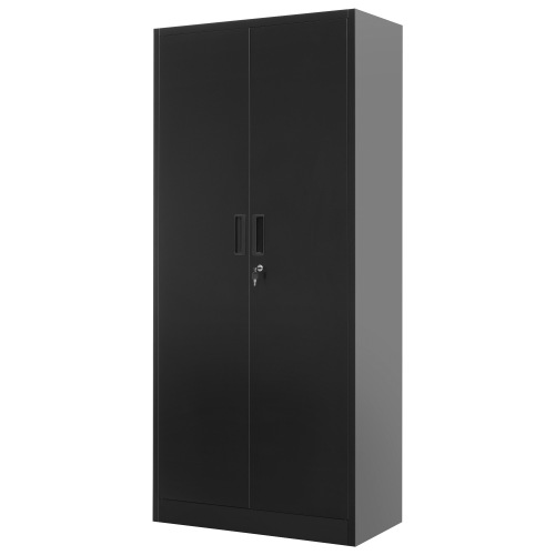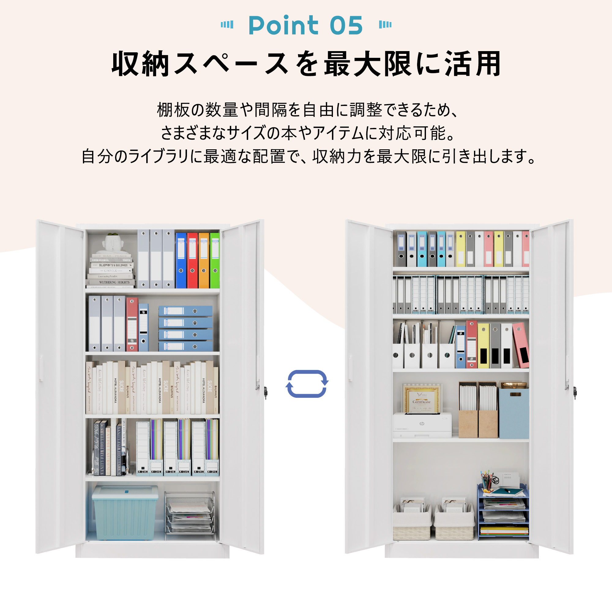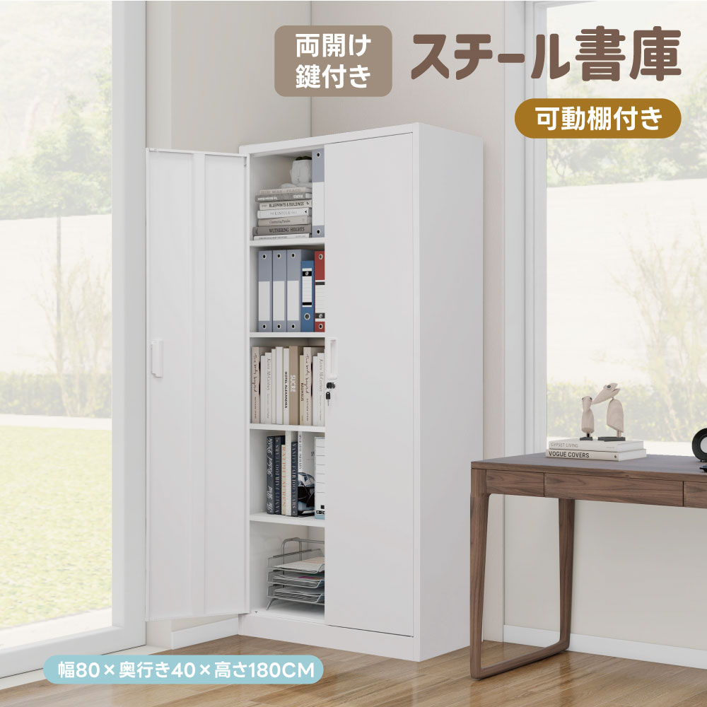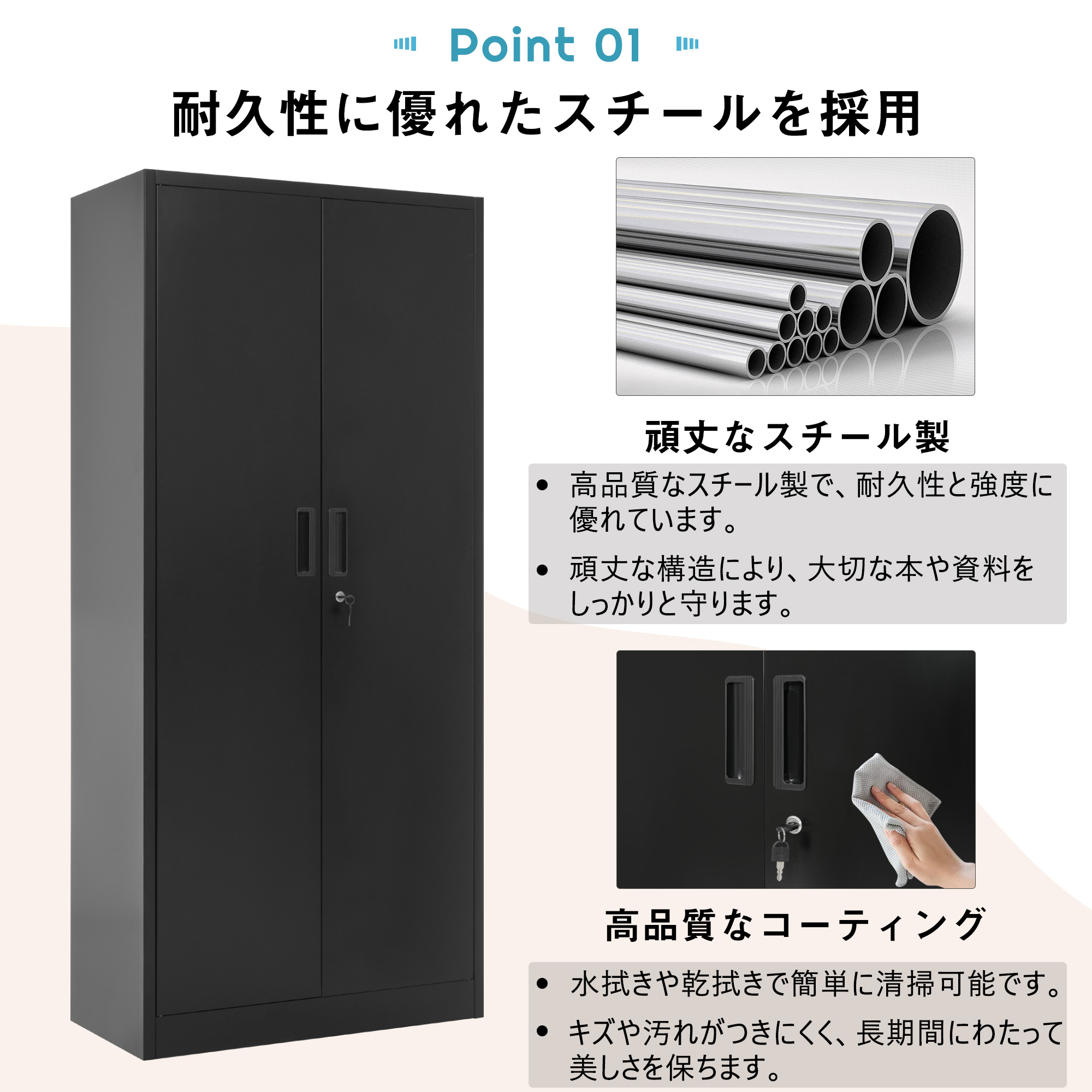 スチール書庫 両開き書庫 書類保管庫 ホワイト ブラック