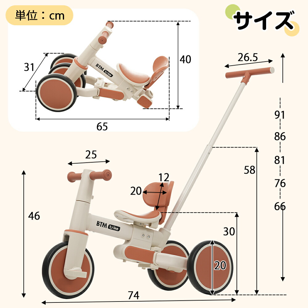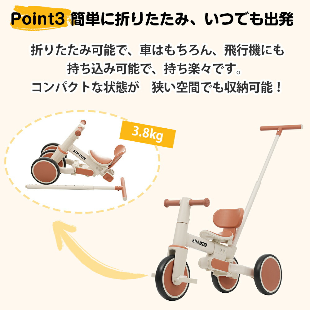 三輪車 5in1 アルミ製 超軽量 子供用 折りたたみ 折り畳み式 コントロールバー かじ取り 取り外し可能 ペダル BTM 誕生日 お祝い 新年プレゼント 贈り物
