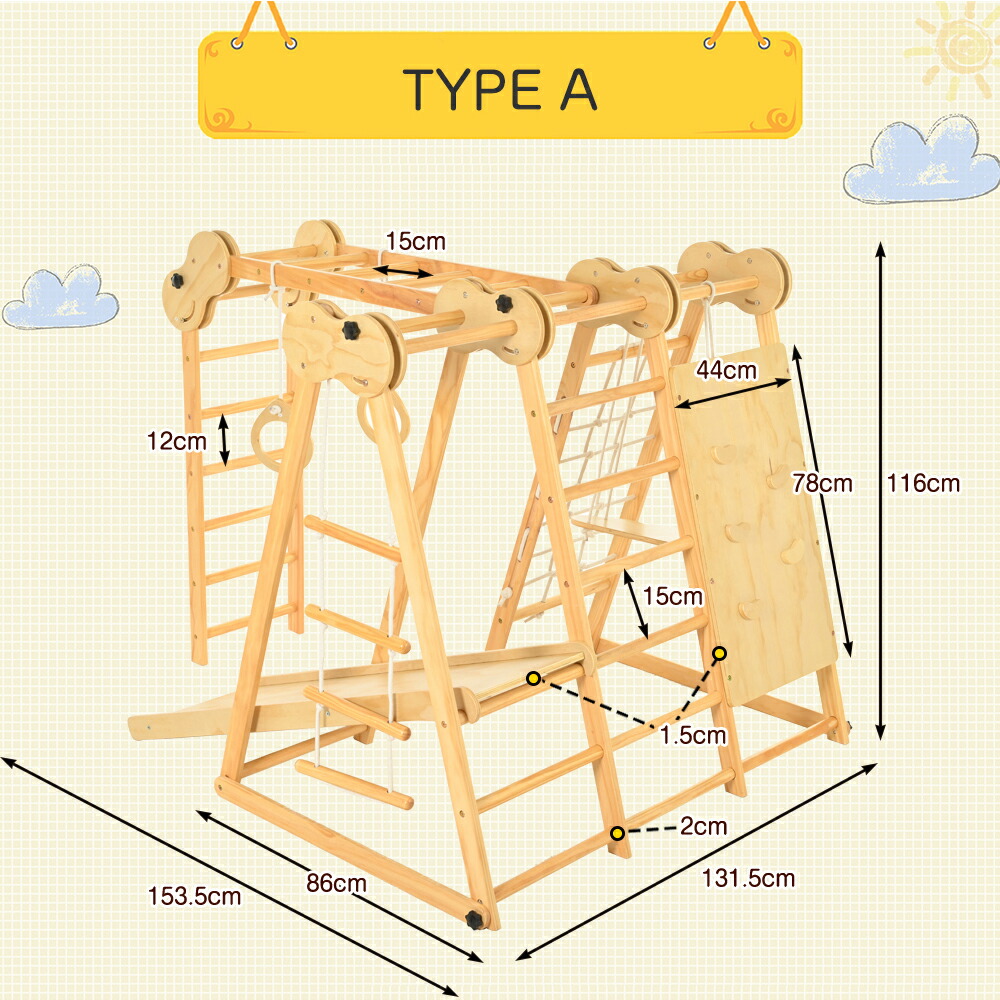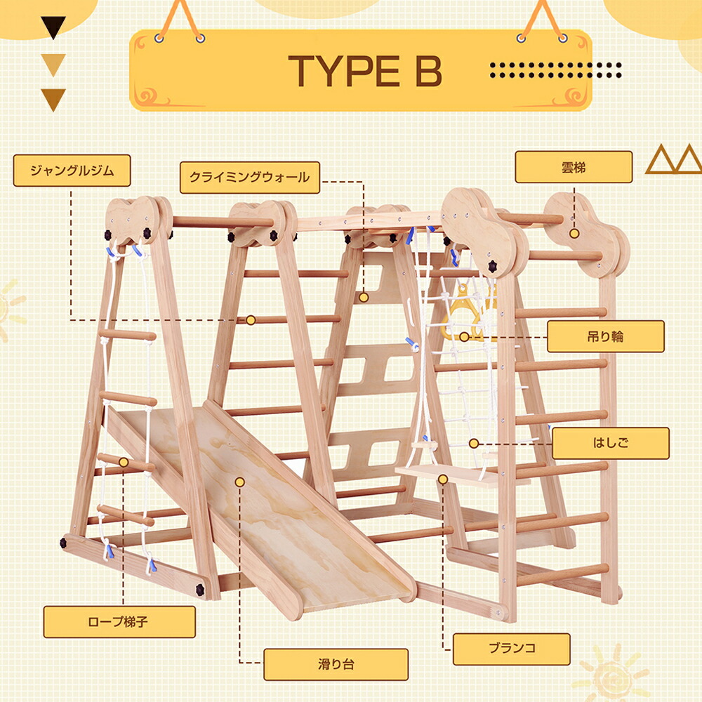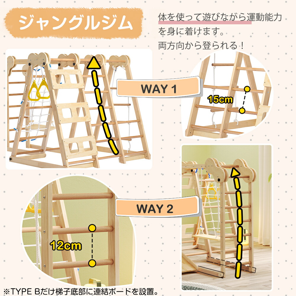 ジャングルジム 天然木 8in1 折り おもちゃ スポーツトイ アクショントイ 大型遊具 ジャングルジム 豊富 TYPE A TYPE B