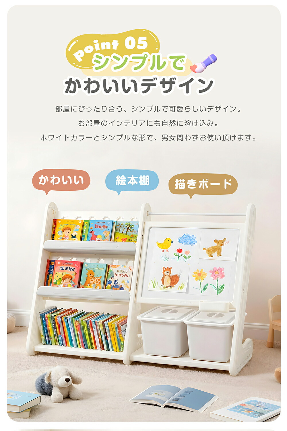 絵本棚 お絵かきボード 収納ケース お