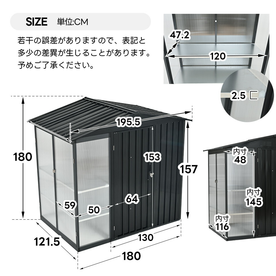 屋外 スチール 倉庫 防水 防さび 戸 グレー ブラック