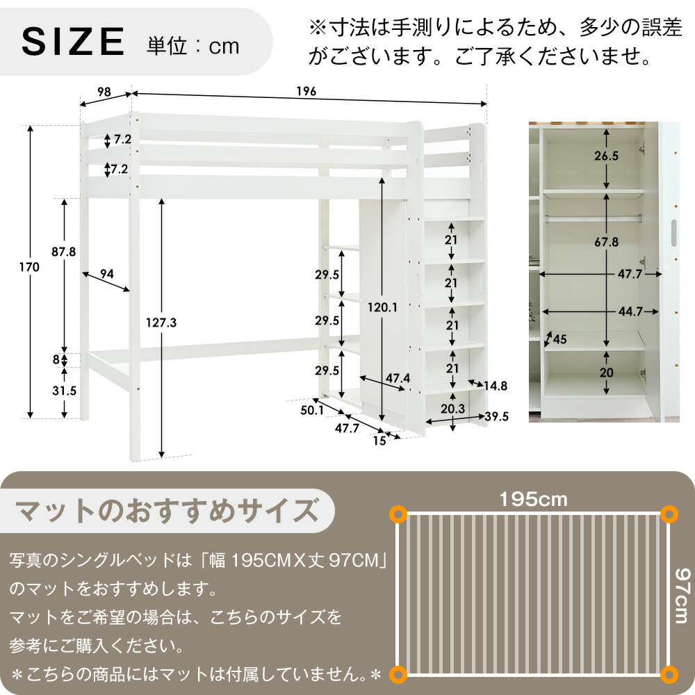 ロフトベッド ハイタイプ ベッド シン