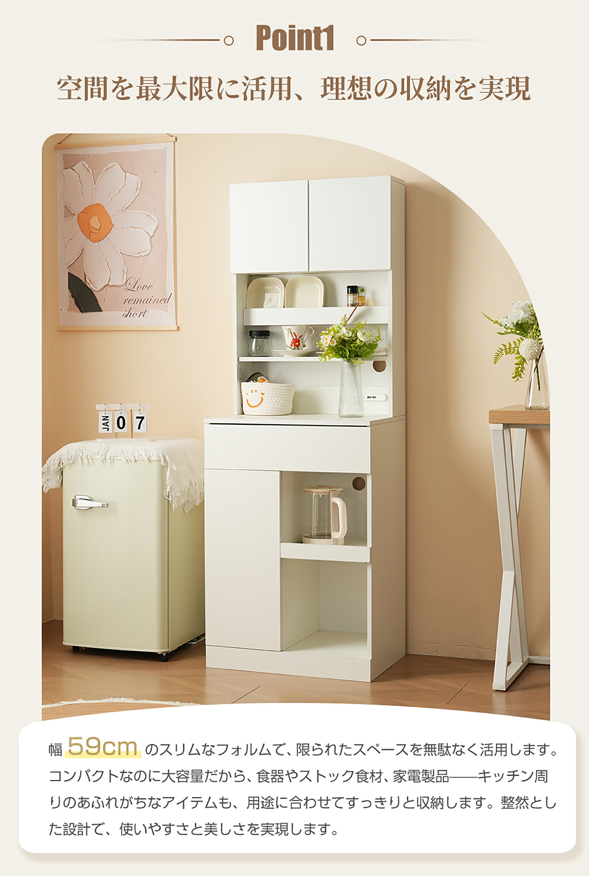 食器棚 キッチンボード レンジボード キッチン 収納 棚 家電収納 キッチン収納 一人暮らし スリム おしゃれ シンプル レンジ台 白 ゴミ箱 上 ベルーナ インテリア お オープン棚
